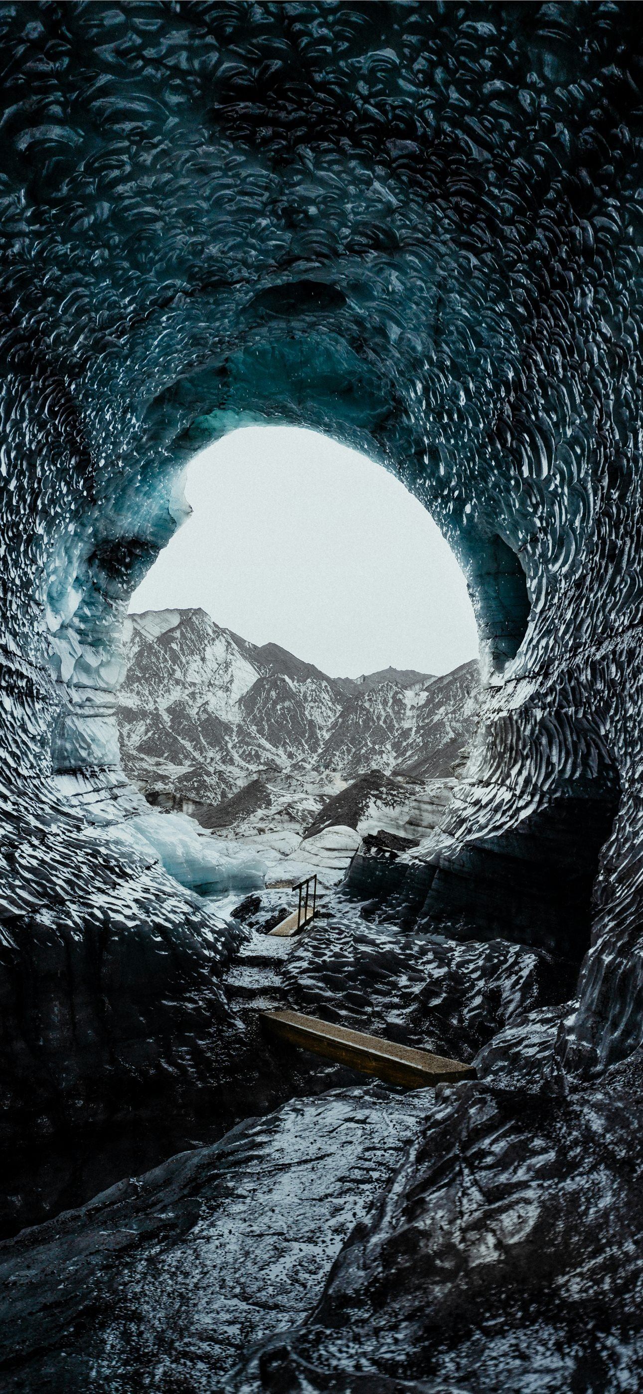 1290x2796 a large ice cave filled with lots of snow - beach iPhone Wallpaper