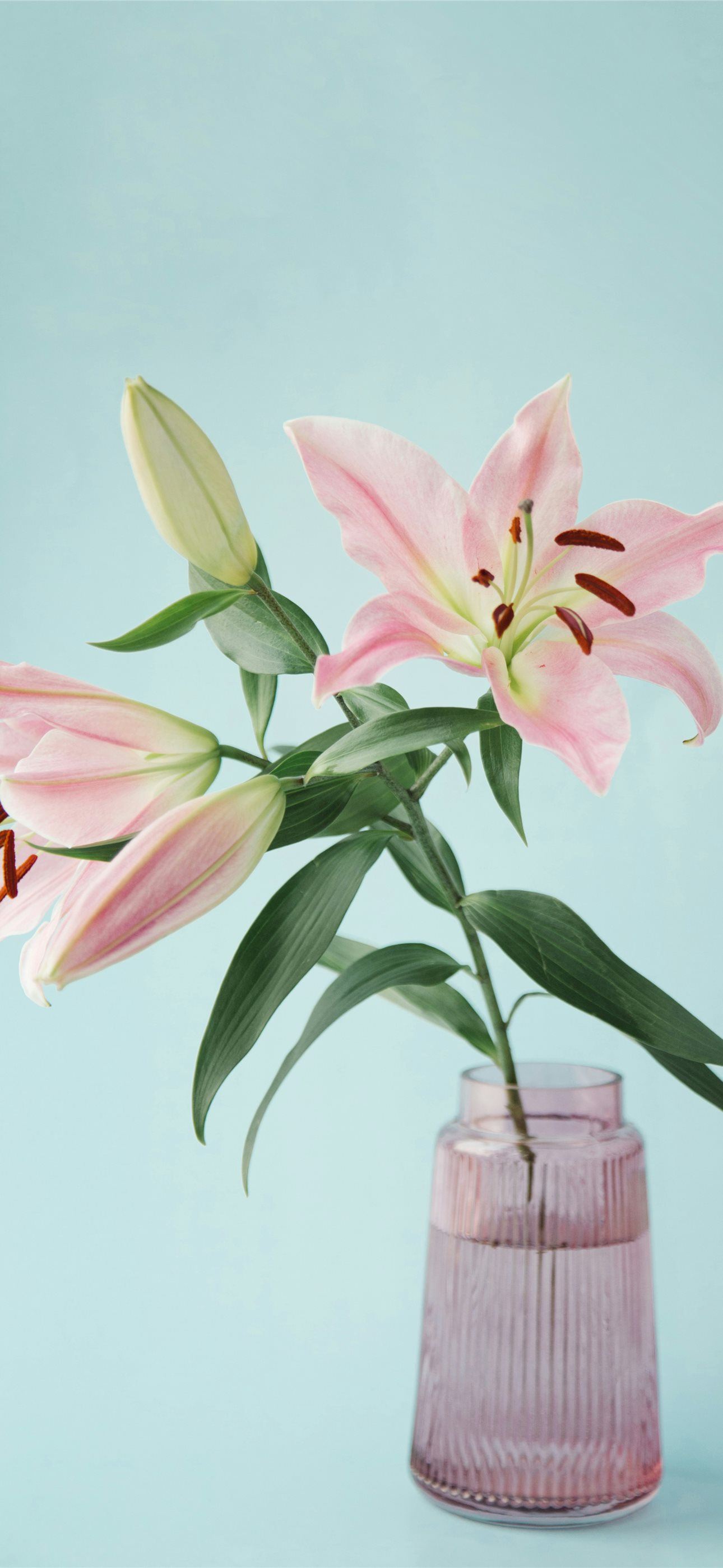 1290x2796 a pink vase filled with pink flowers on top of a t... - blossom iPhone Wallpaper