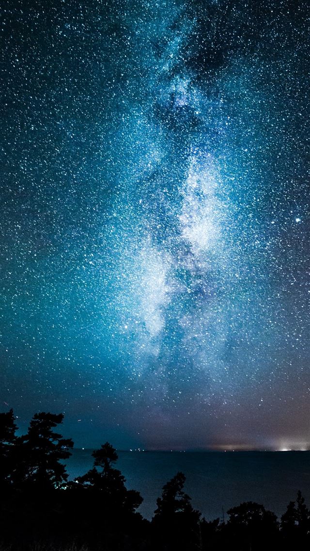 silhouette photography of Milky Way during nightti... iPhone wallpaper