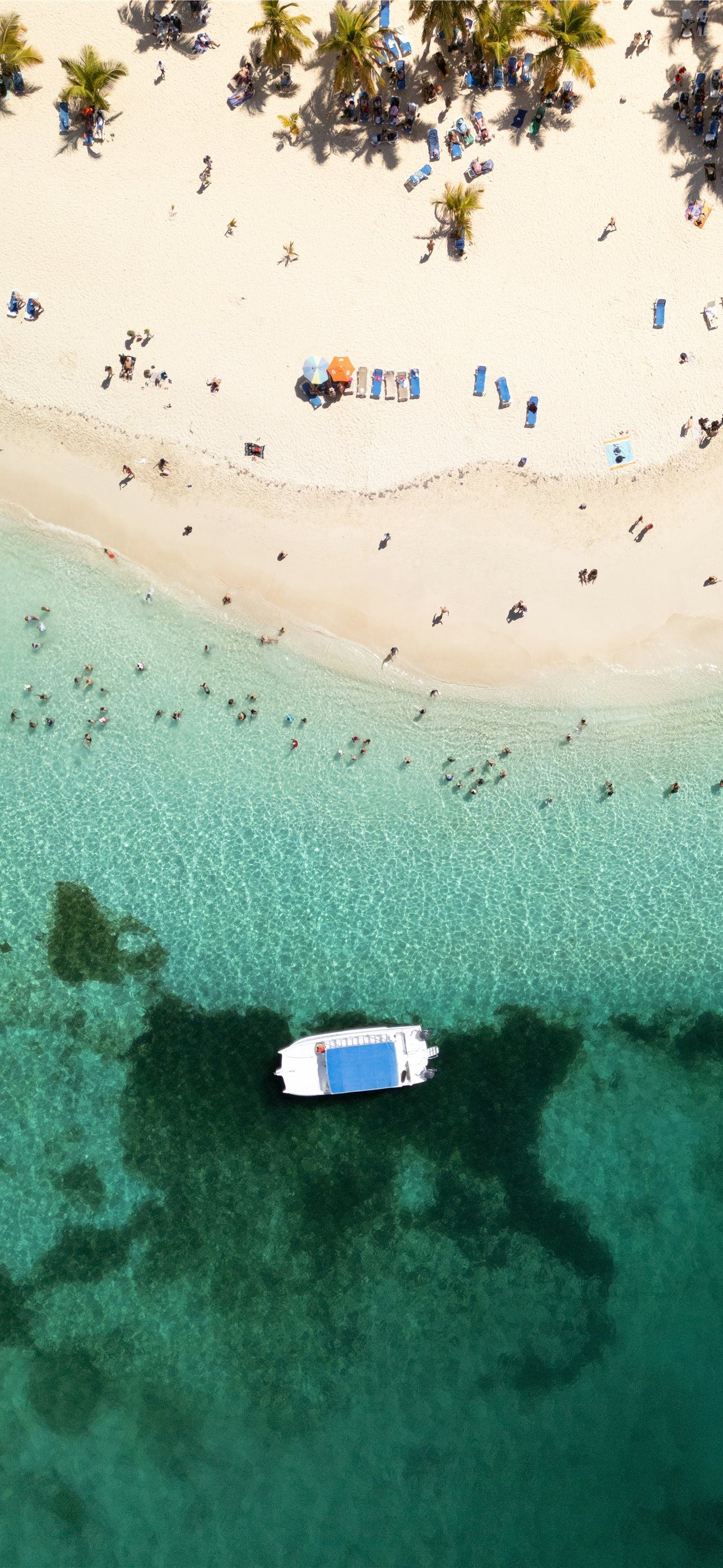 1290x2796 an aerial view of a beach with a boat in the water -  iPhone Wallpaper