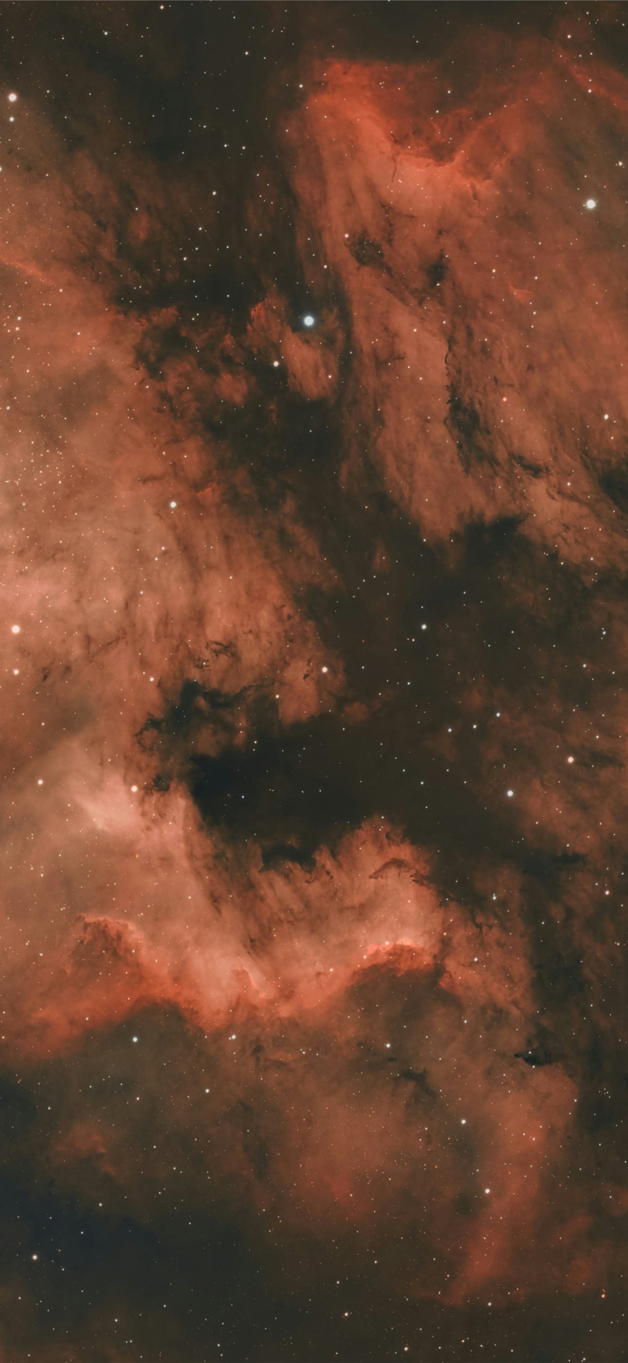 Vibrant red and dark nebula with scattered stars iPhone wallpaper