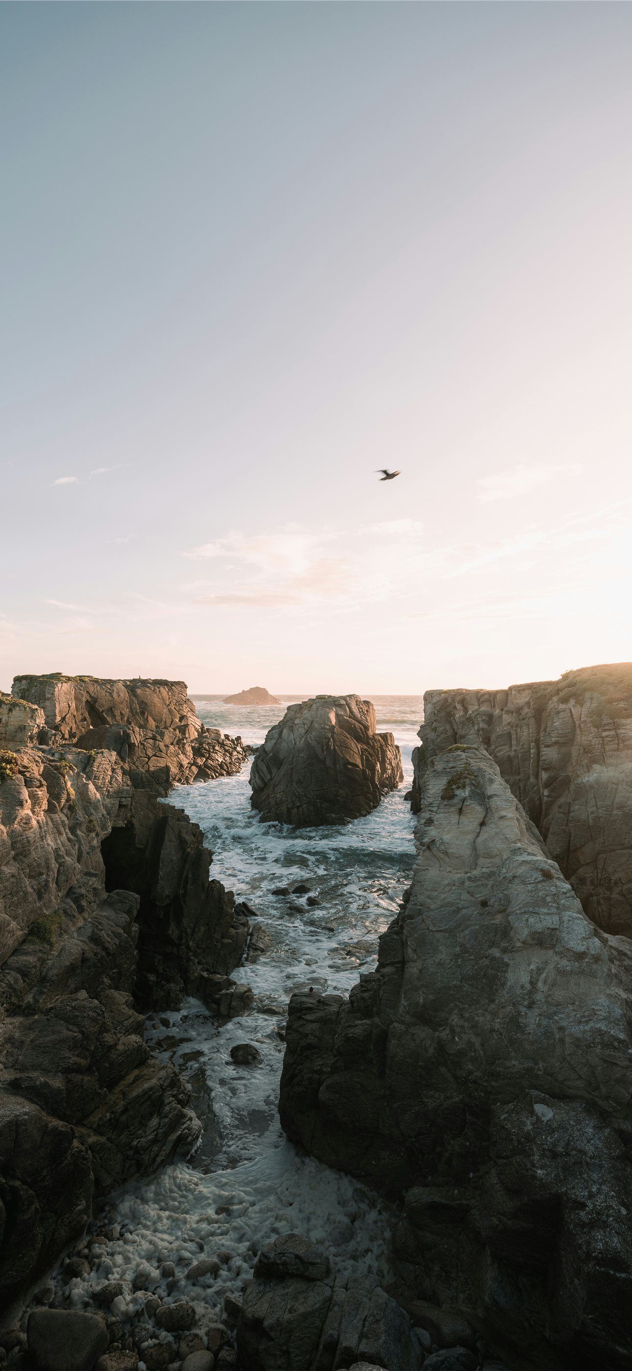 1290x2796 Rocky coastline with waves crashing at sunset  -  iPhone Wallpaper