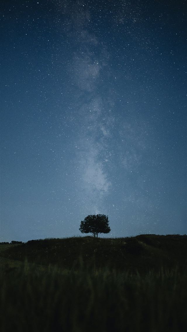 640x1136 A lone tree in a grassy field under a night sky -  iPhone Wallpaper