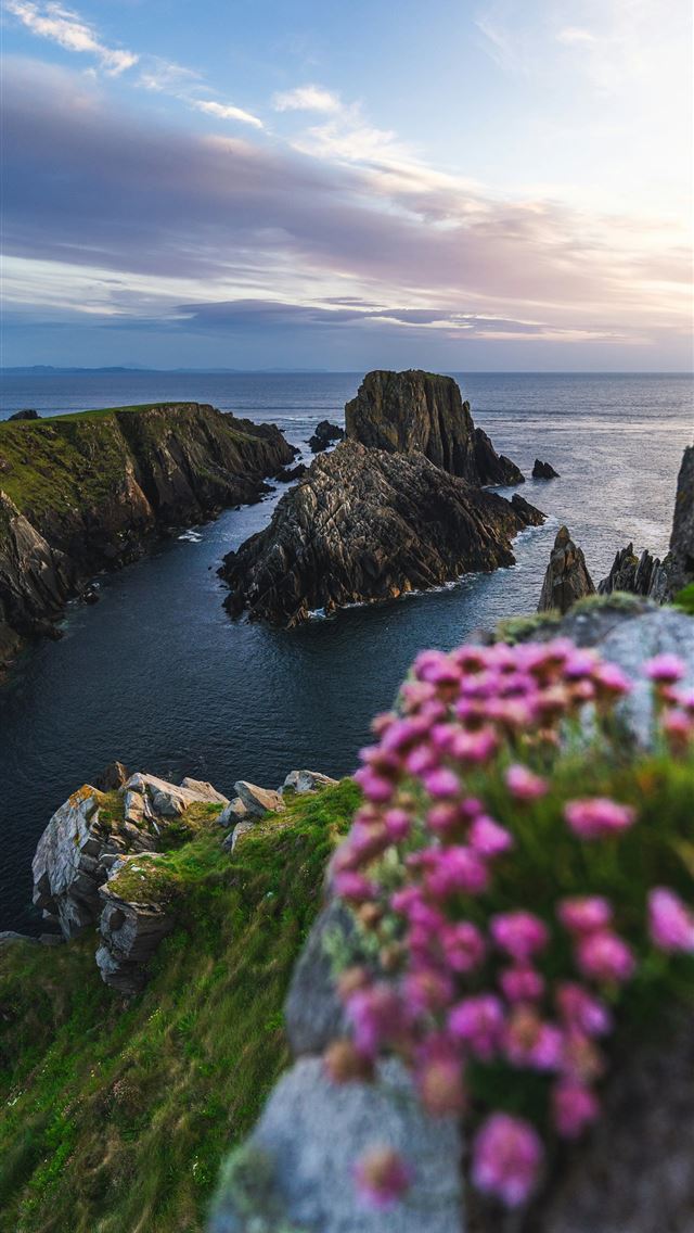 640x1136 Pink flowers growing out of the rocks near the oce... -  iPhone Wallpaper
