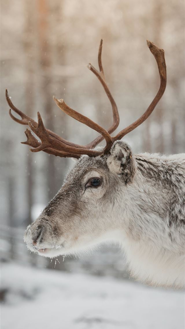 640x1136 A reindeer with large antlers standing in the snow -  iPhone Wallpaper