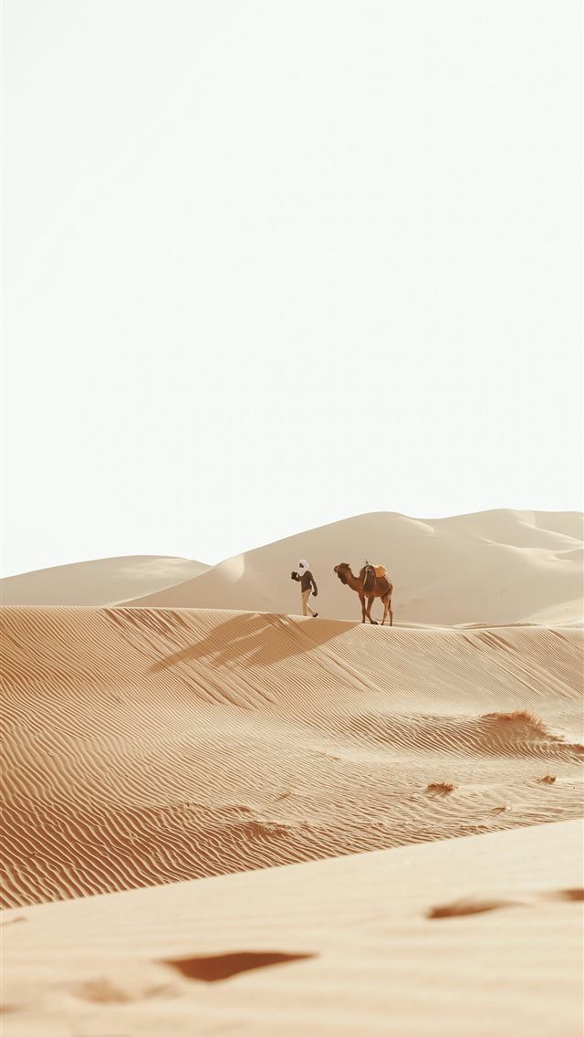 640x1136 A couple of camels that are standing in the sand -  iPhone Wallpaper
