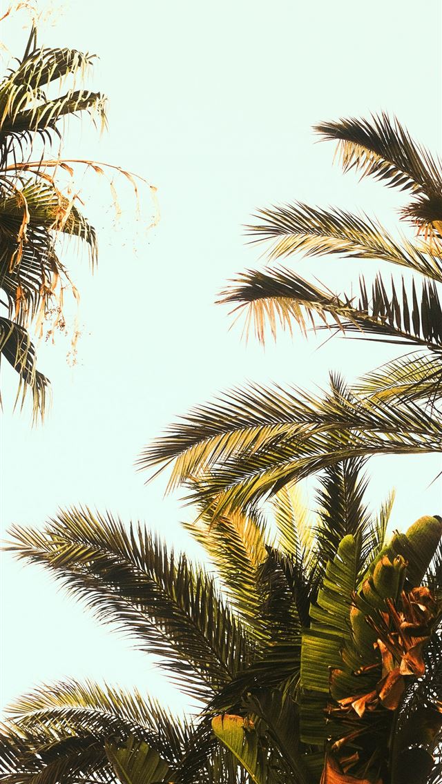 640x1136 Palm trees blowing in the wind on a sunny day -  iPhone Wallpaper