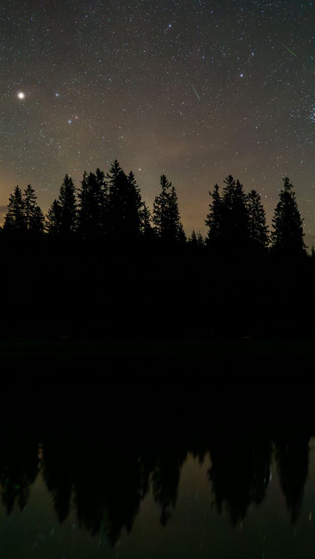 The night sky is reflected in the still water of a... iPhone wallpaper