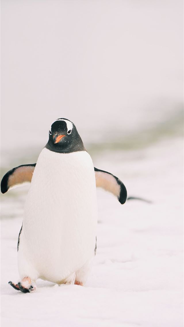640x1136 A penguin walking on the beach in the snow -  iPhone Wallpaper