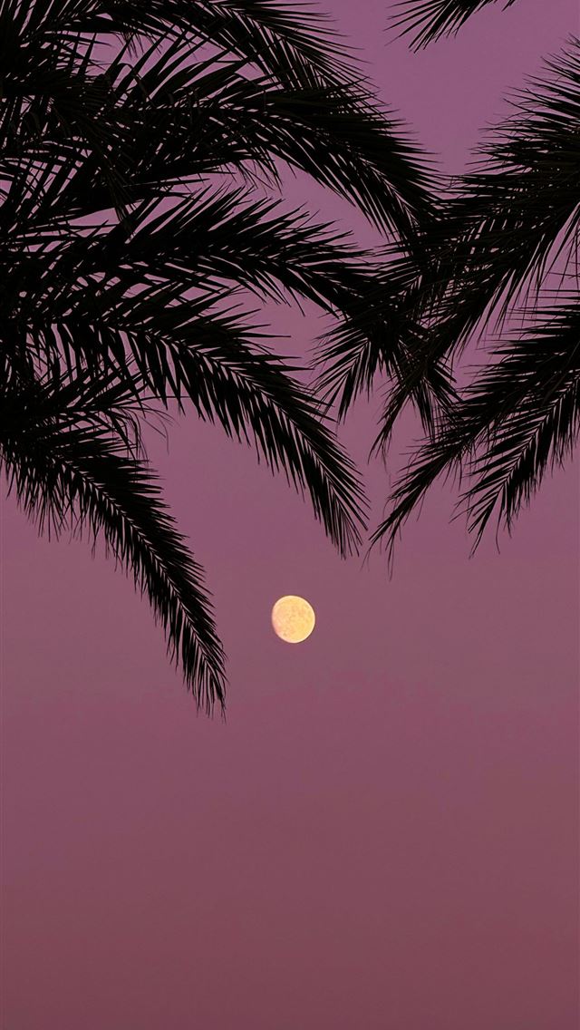 640x1136 Palm leaves frame the moon in a purple sky  -  iPhone Wallpaper