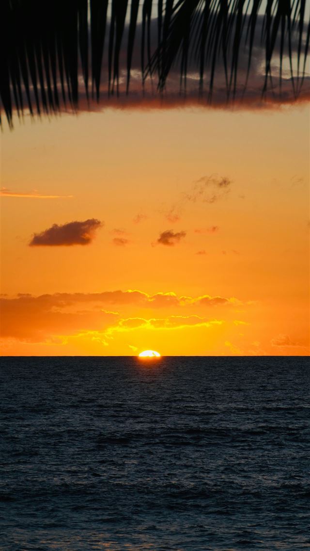 640x1136 The sun is setting over the ocean with a palm tree... -  iPhone Wallpaper