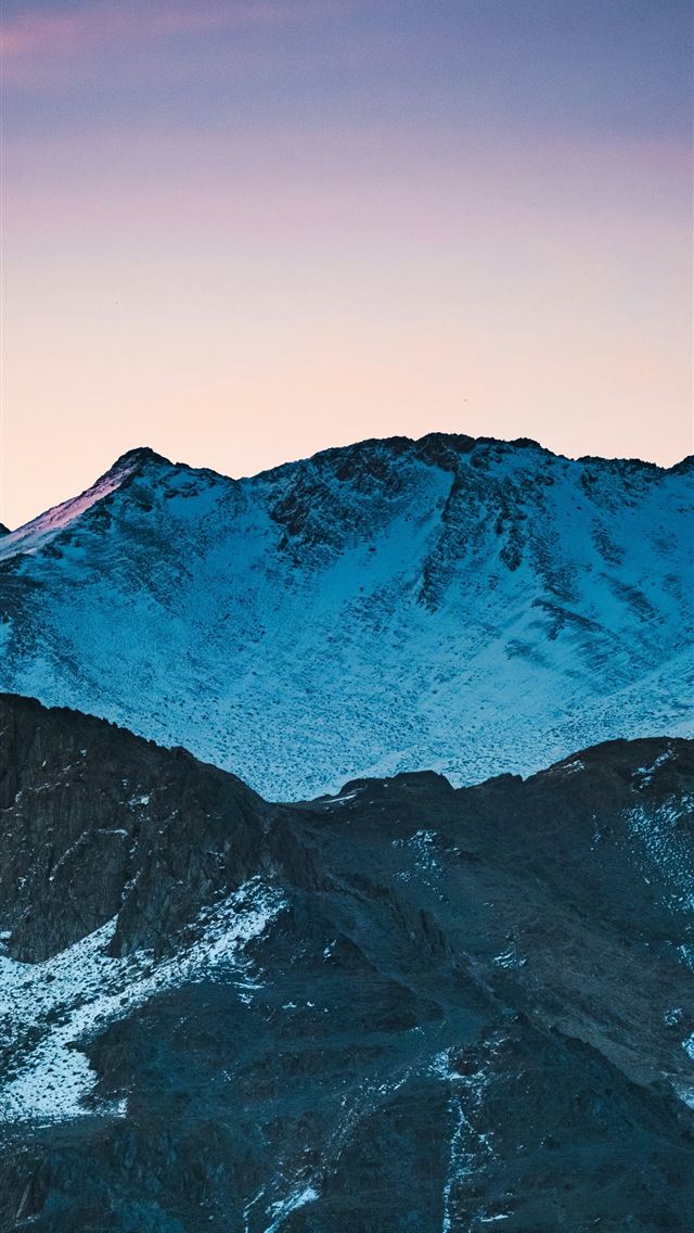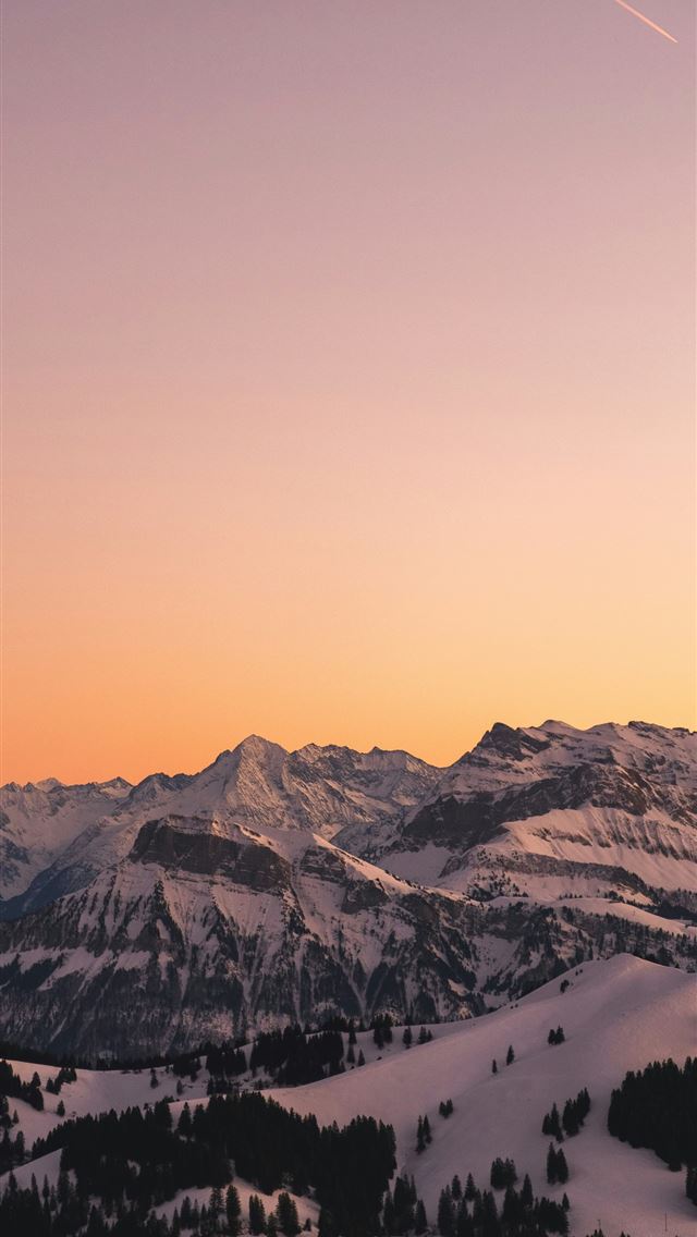 640x1136 Snowy mountains silhouetted against a vibrant suns... -  iPhone Wallpaper