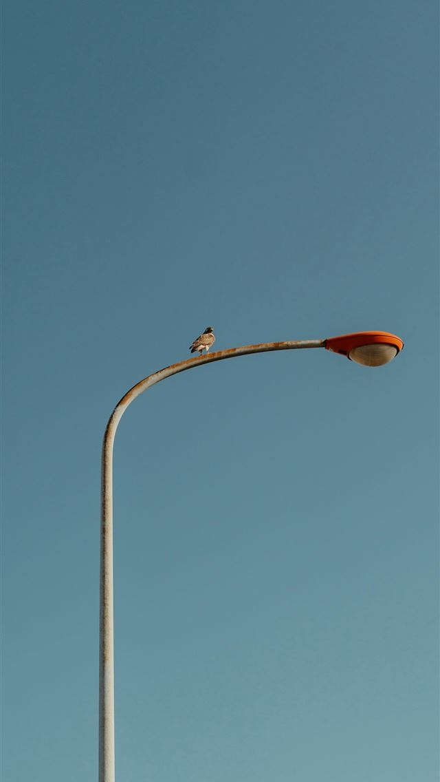 A small bird perched on a street lamp iPhone wallpaper