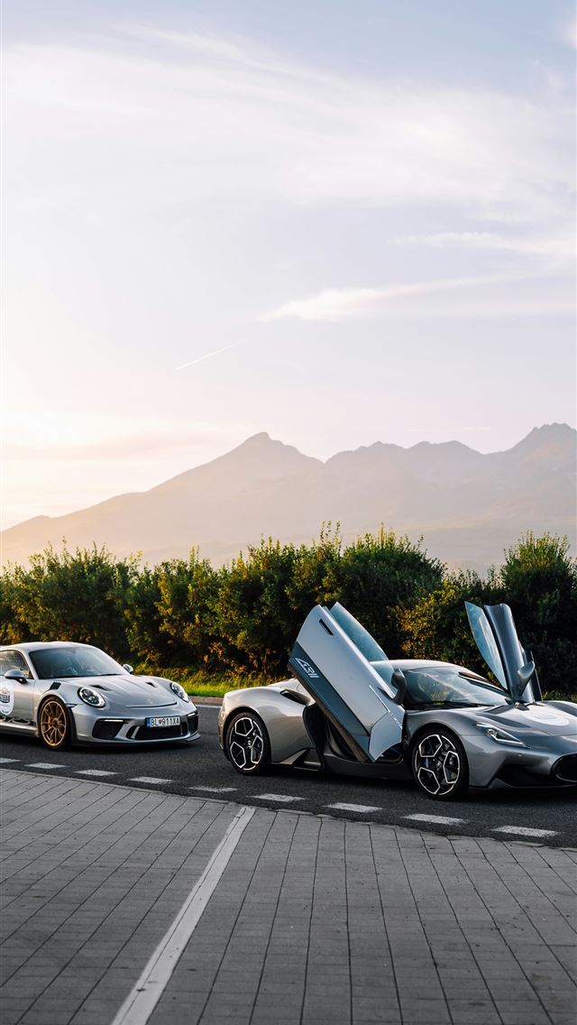 a couple of cars parked on the side of a road iPhone wallpaper