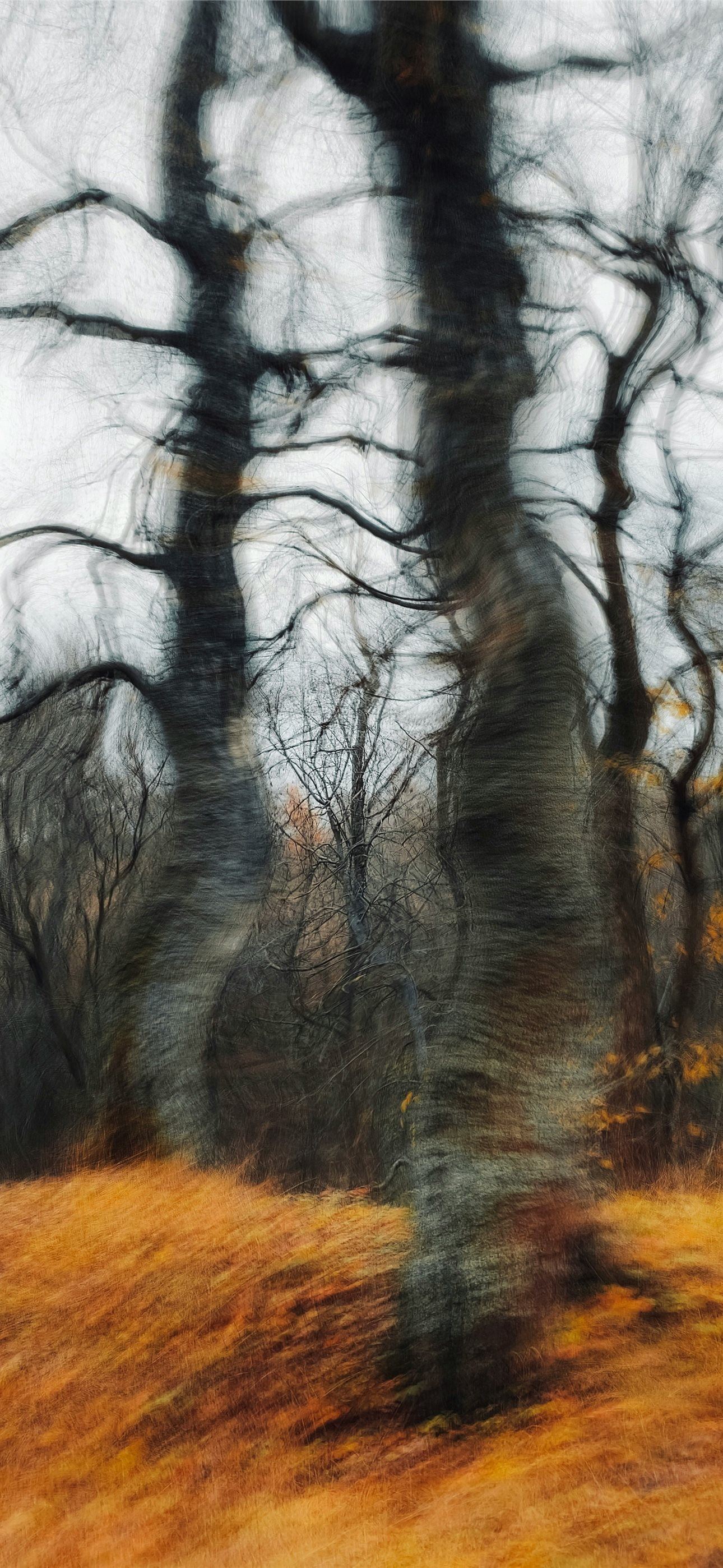 1290x2796 a blurry photo of trees in a field - abstract iPhone Wallpaper