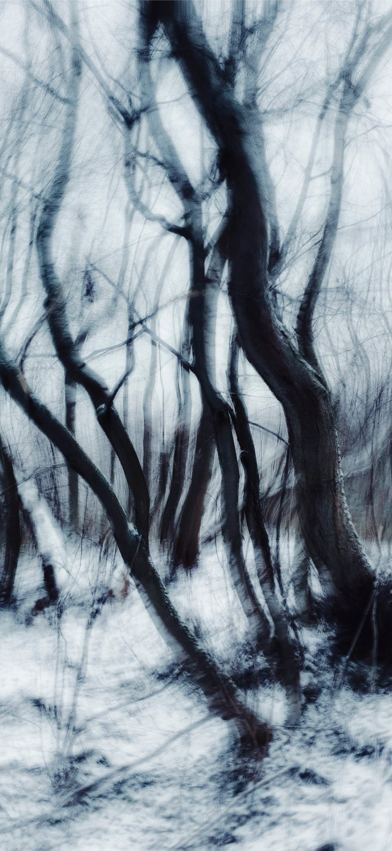 1290x2796 a black and white photo of trees in the snow - abstract iPhone Wallpaper