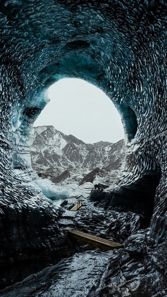 a large ice cave filled with lots of snow iPhone wallpaper