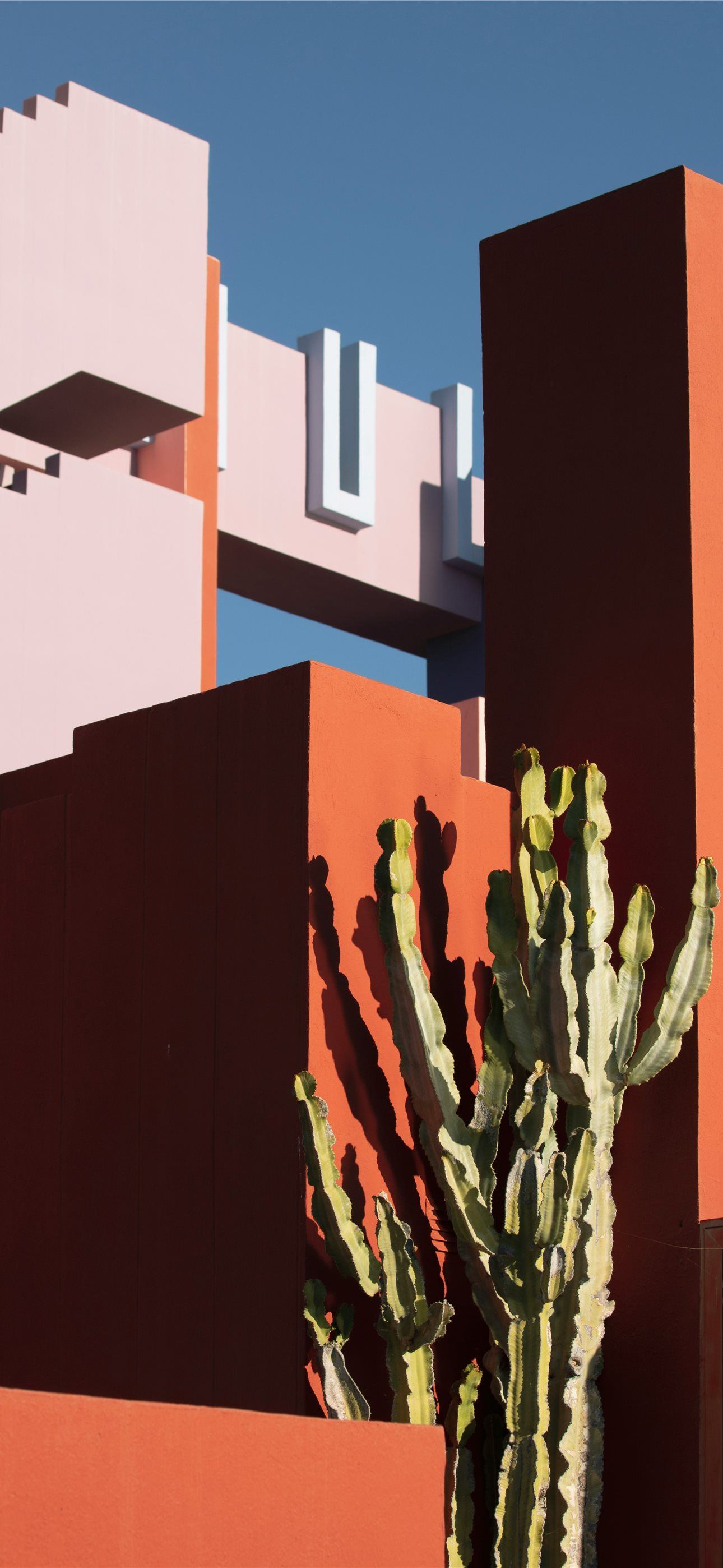 1290x2796 a cactus in front of a building with a sky backgro... -  iPhone Wallpaper