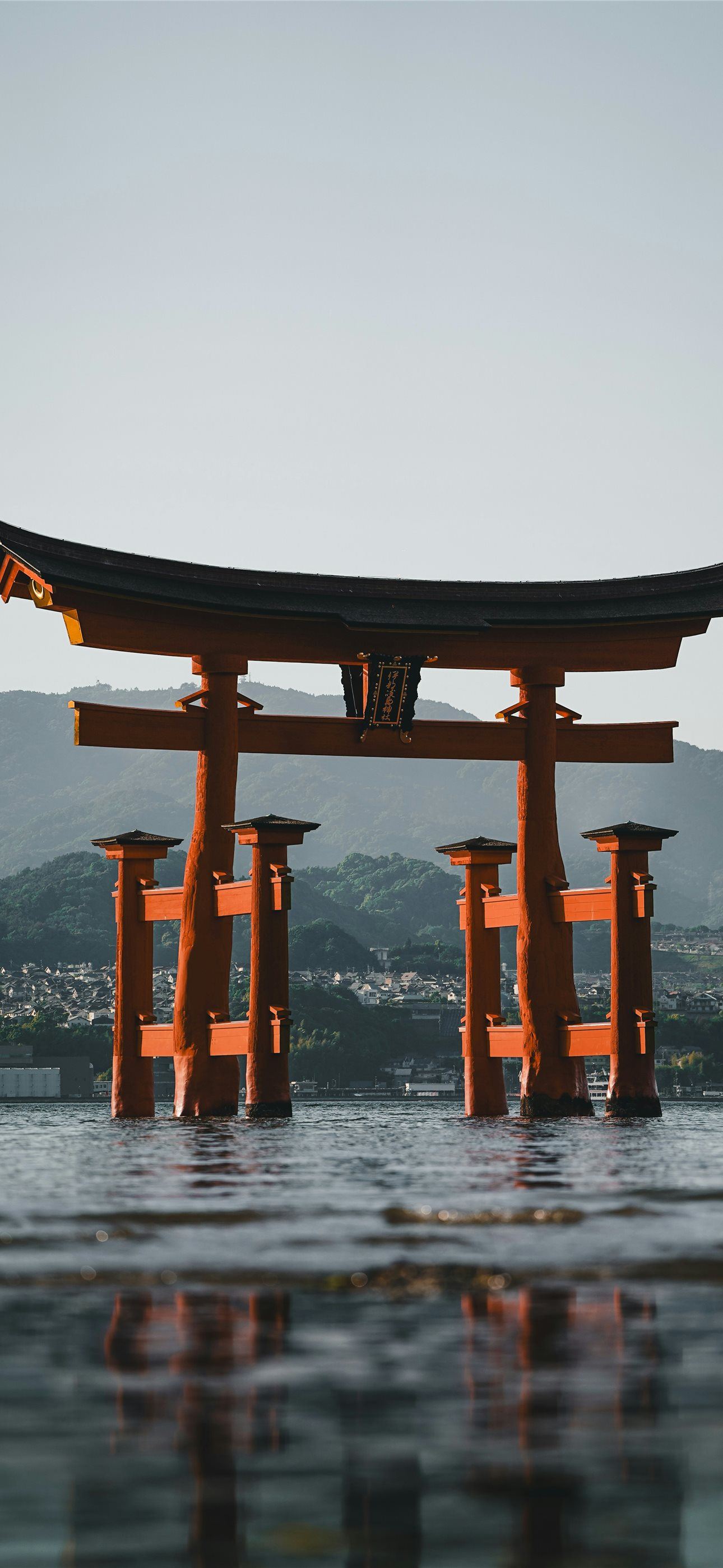 an orange tori tori floating on top of a body of w... iPhone wallpaper