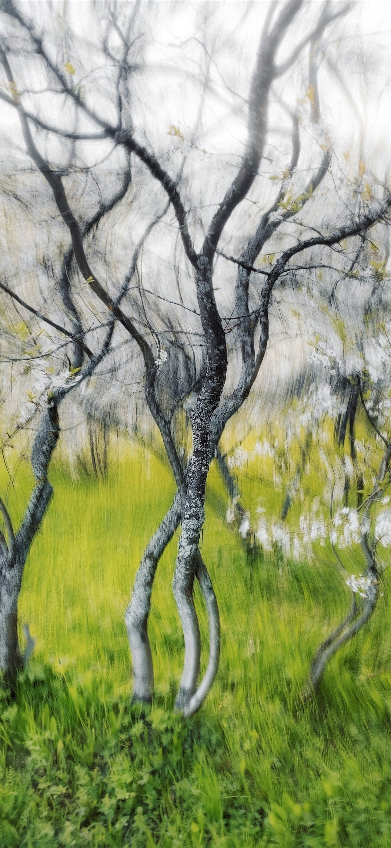 1290x2796 a painting of trees in a grassy field -  iPhone Wallpaper