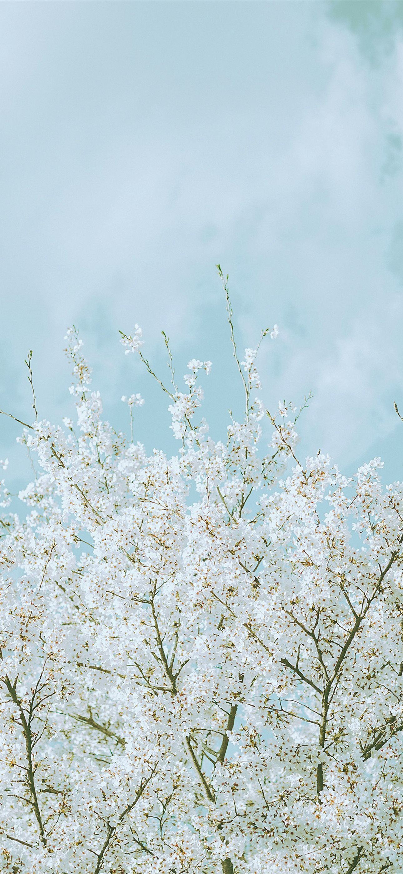 a tree with white flowers in front of a blue sky iPhone wallpaper