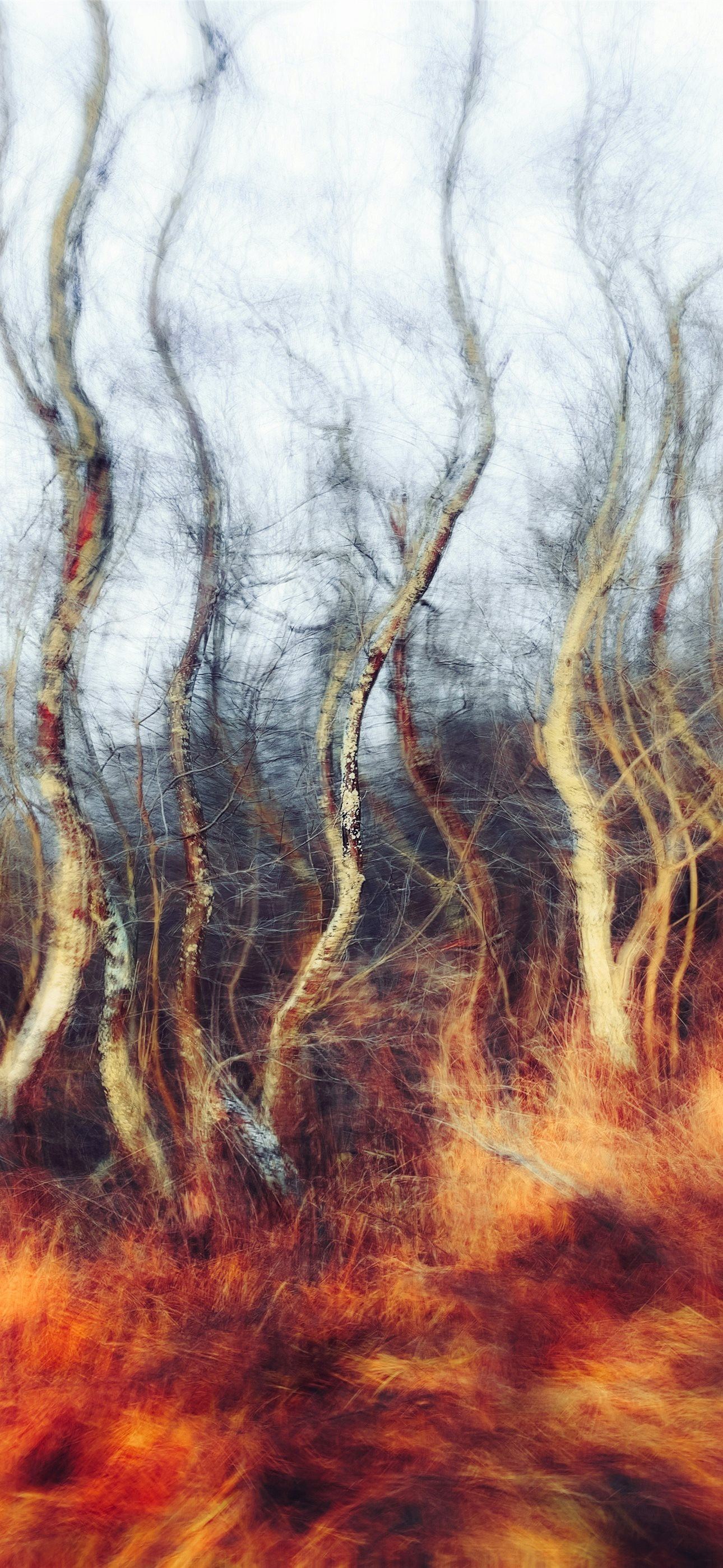 1290x2796 a blurry photo of trees in a forest -  iPhone Wallpaper