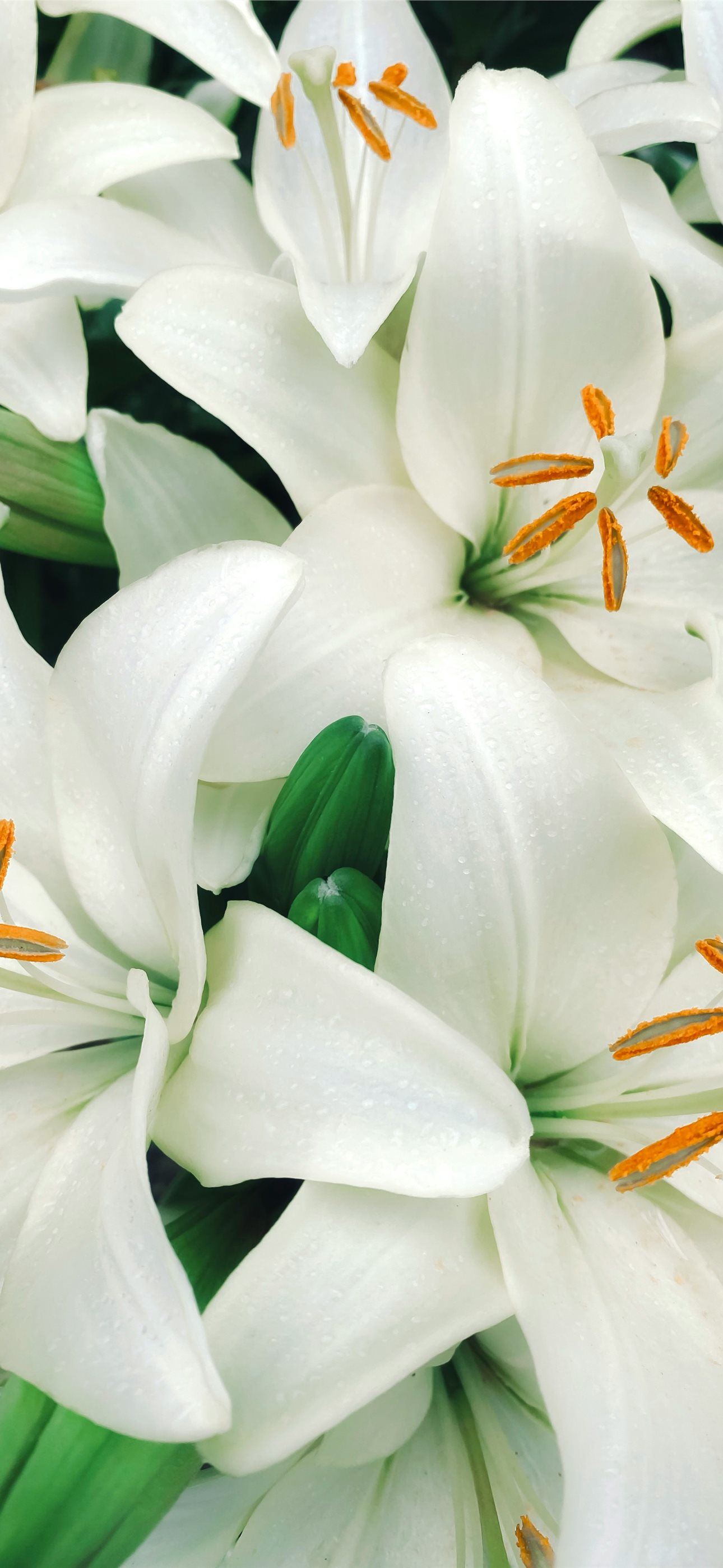 1290x2796 a bunch of white flowers with orange stamens -  iPhone Wallpaper