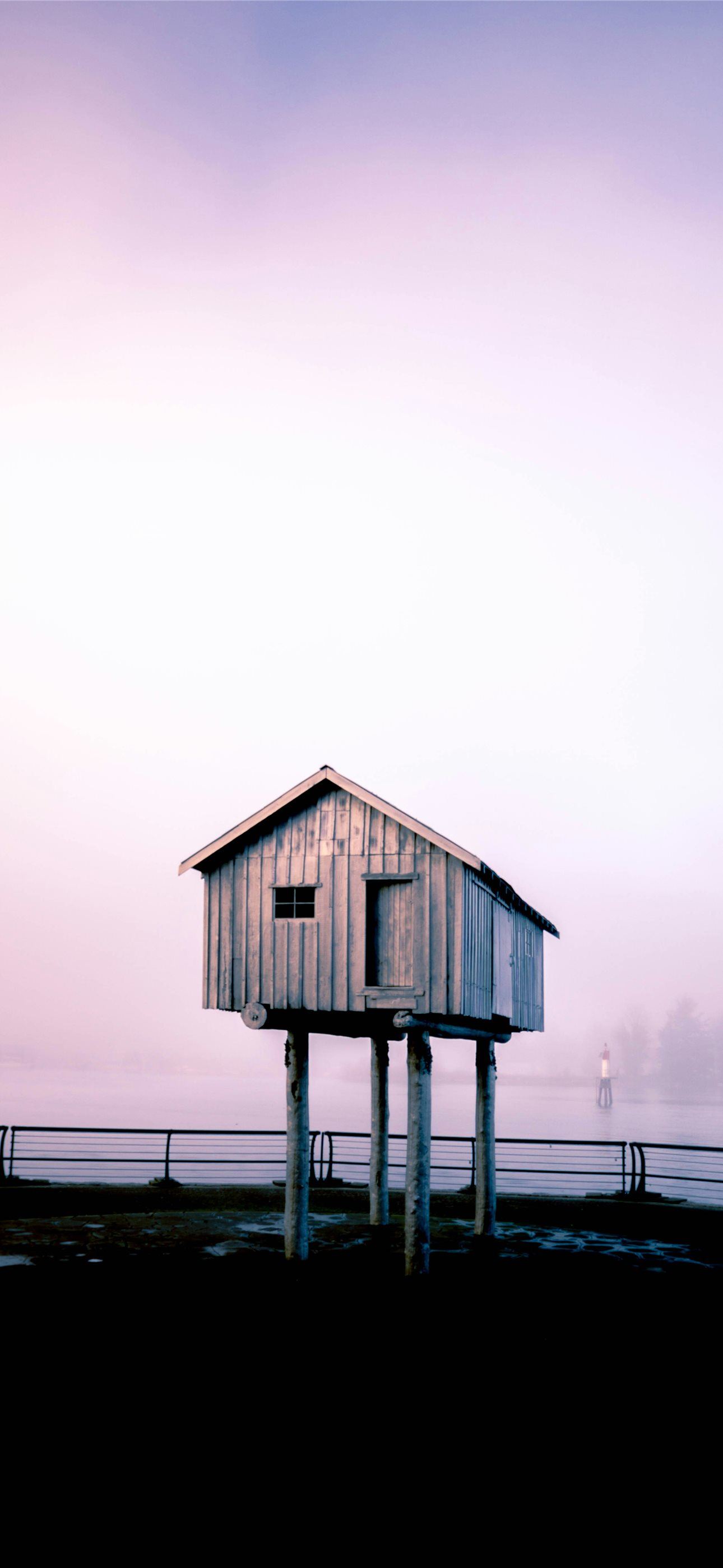 1290x2796 gray wooden storage shed under gray sky -  iPhone Wallpaper