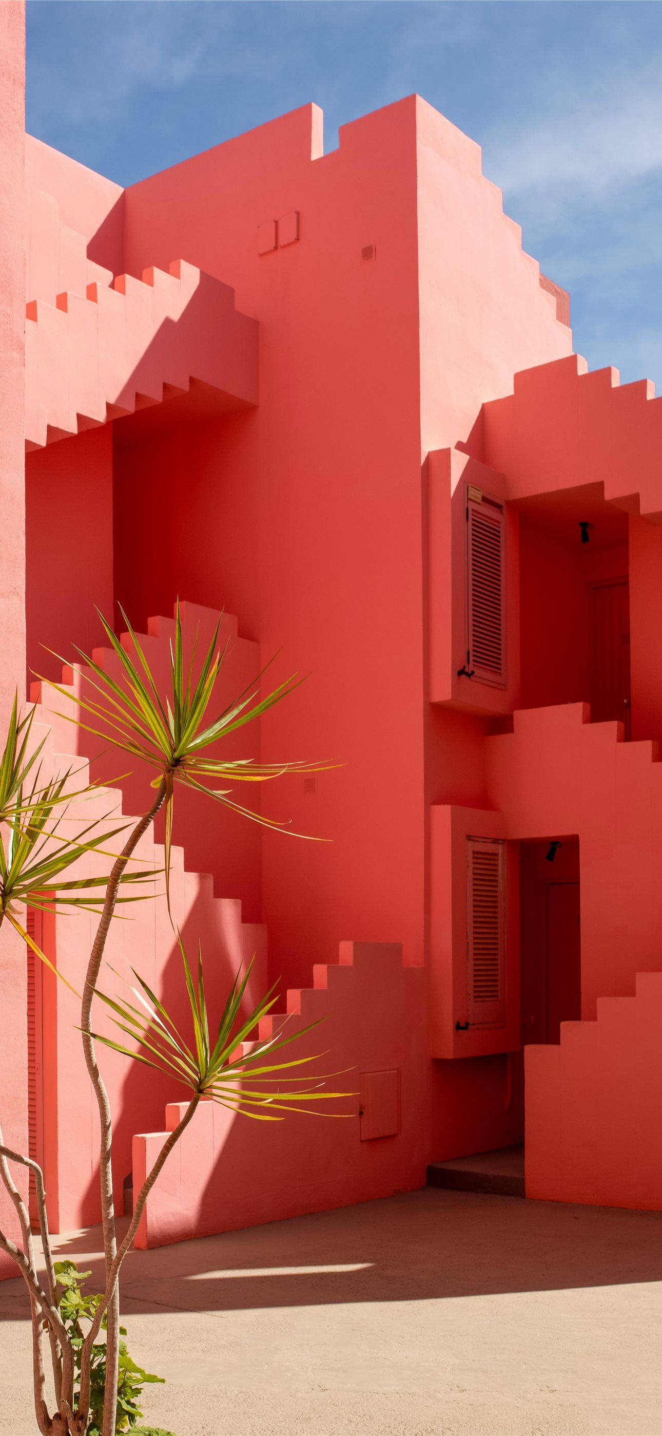 1290x2796 a plant in a pot in front of a pink building -  iPhone Wallpaper