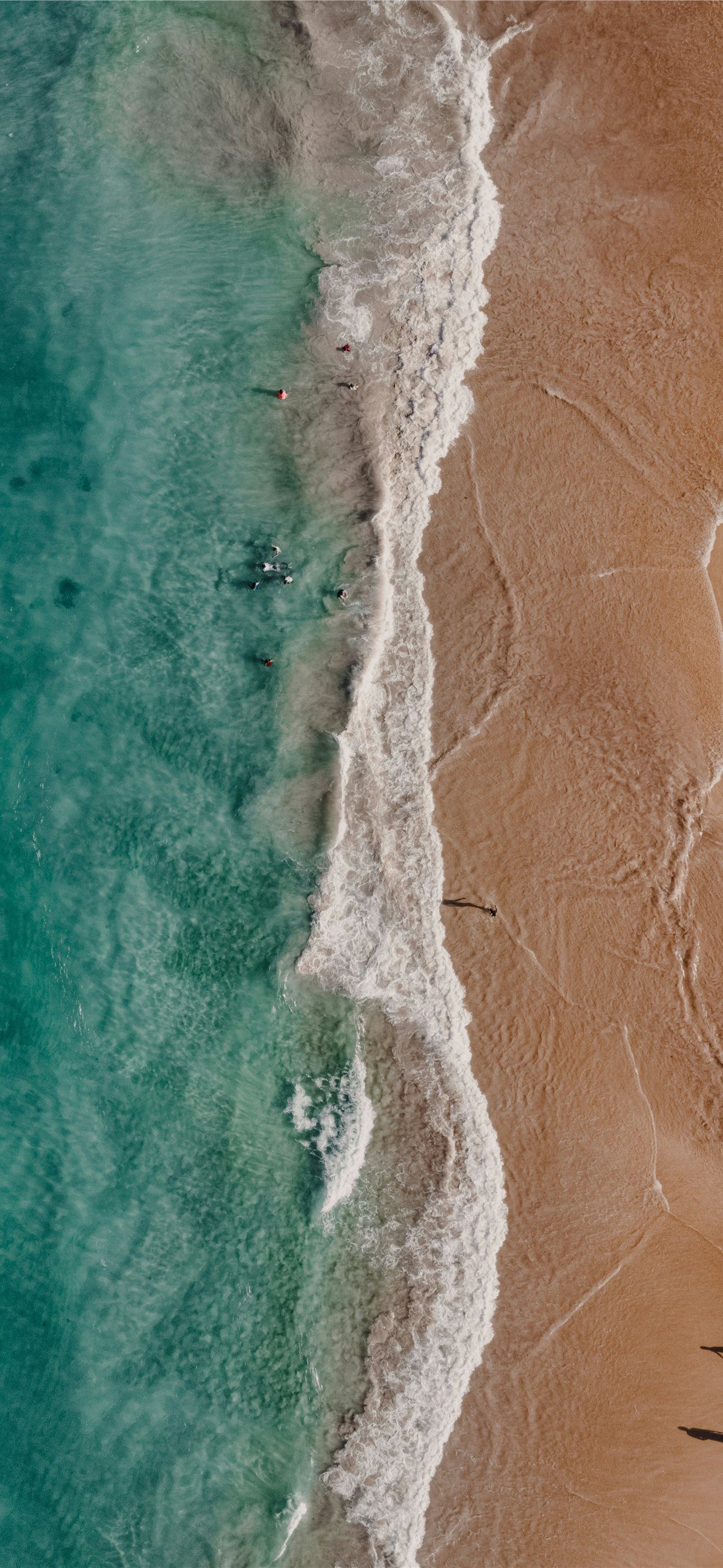1290x2796 an aerial view of a beach with people in the water -  iPhone Wallpaper