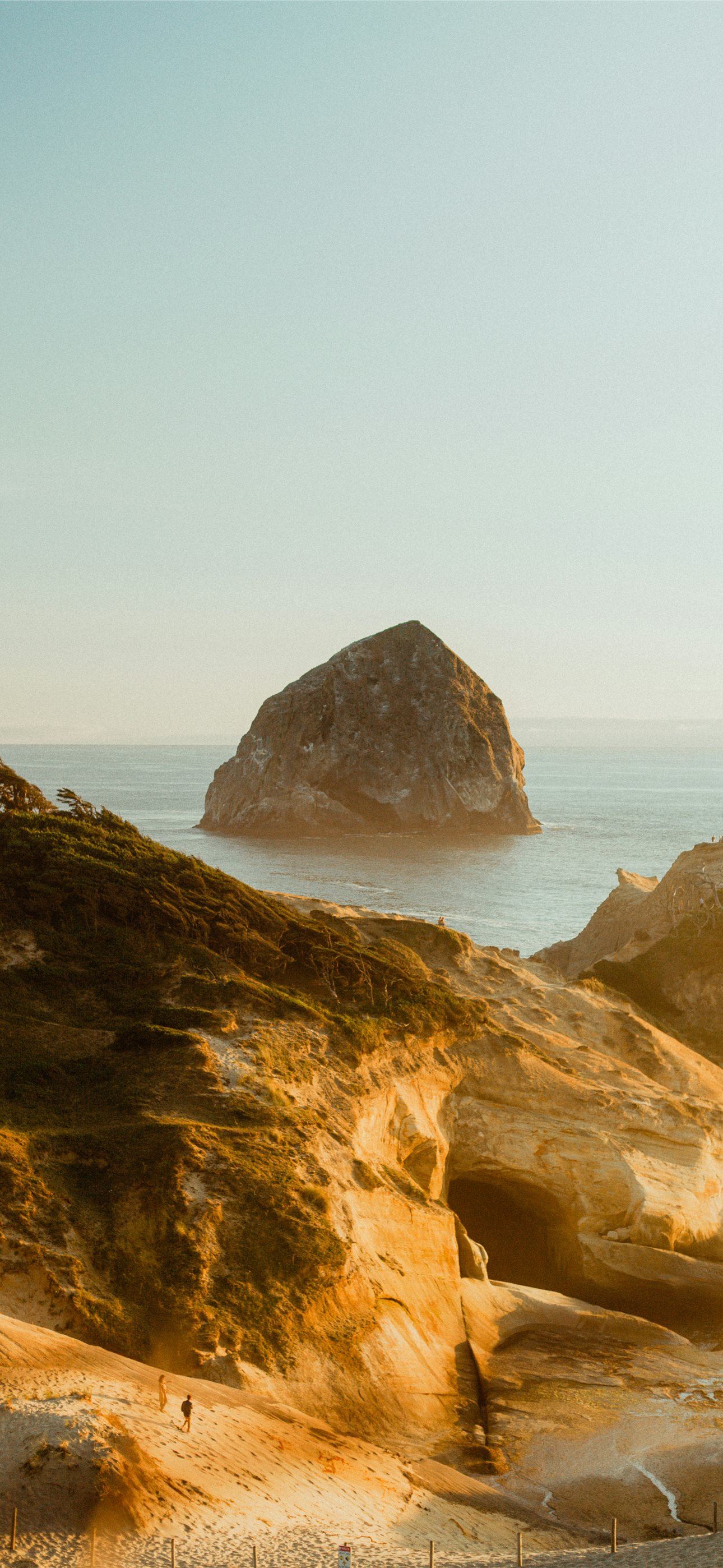 1290x2796 a view of a beach with a large rock in the backgro... -  iPhone Wallpaper