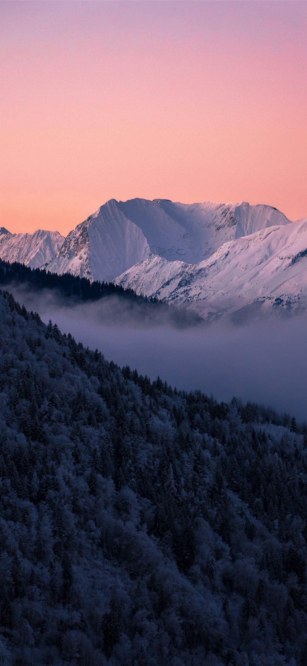 1290x2796 a mountain covered in snow with a pink sky -  iPhone Wallpaper