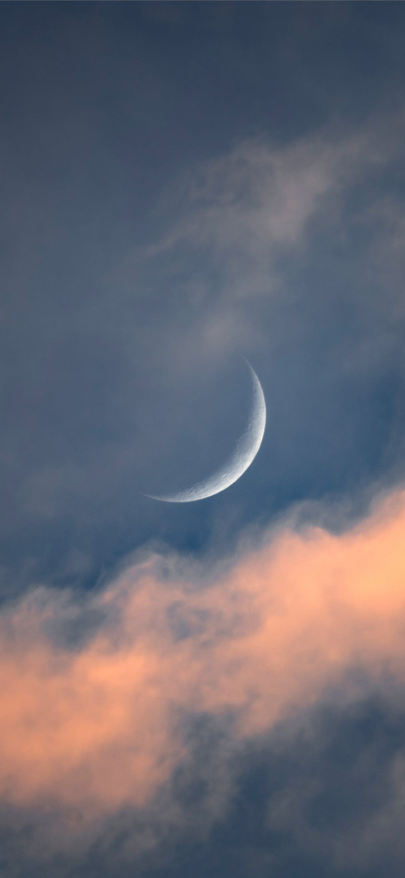 1290x2796 a crescent moon is seen through a cloudy sky -  iPhone Wallpaper