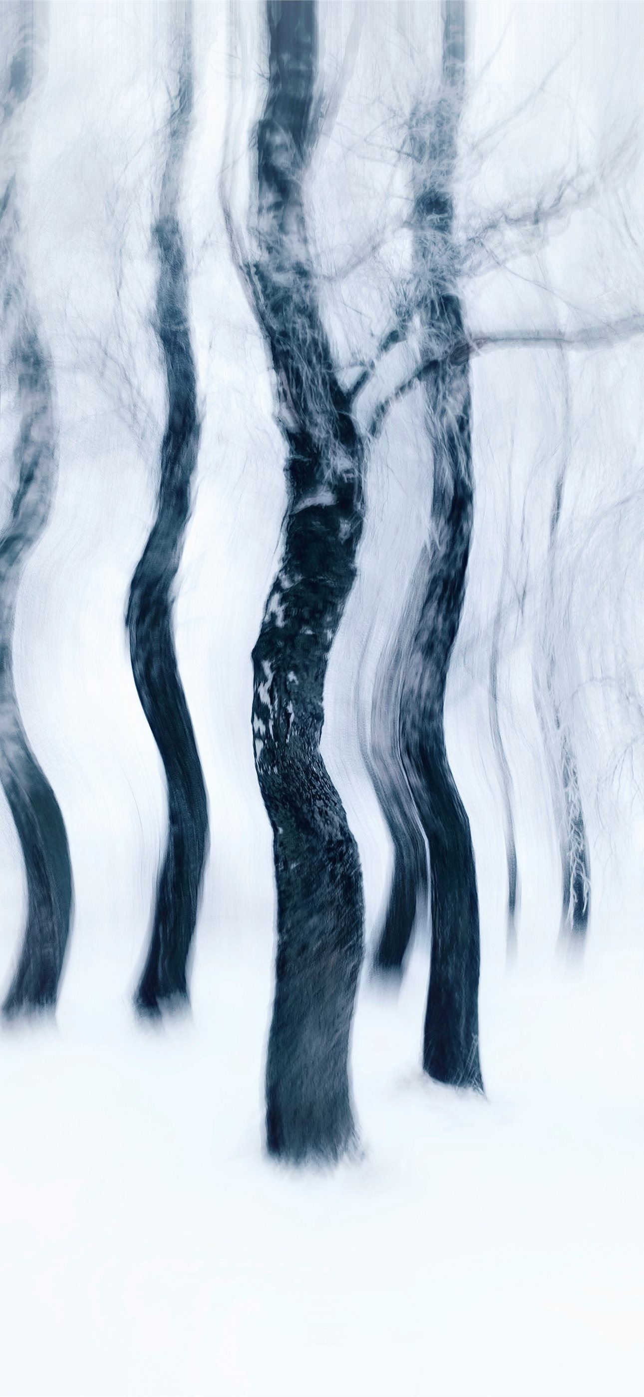 1290x2796 a black and white photo of trees in the snow -  iPhone Wallpaper