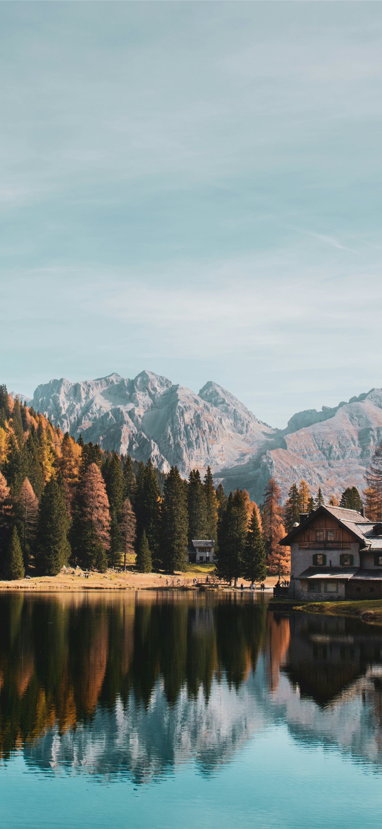 1290x2796 a house by a lake with mountains in the background -  iPhone Wallpaper
