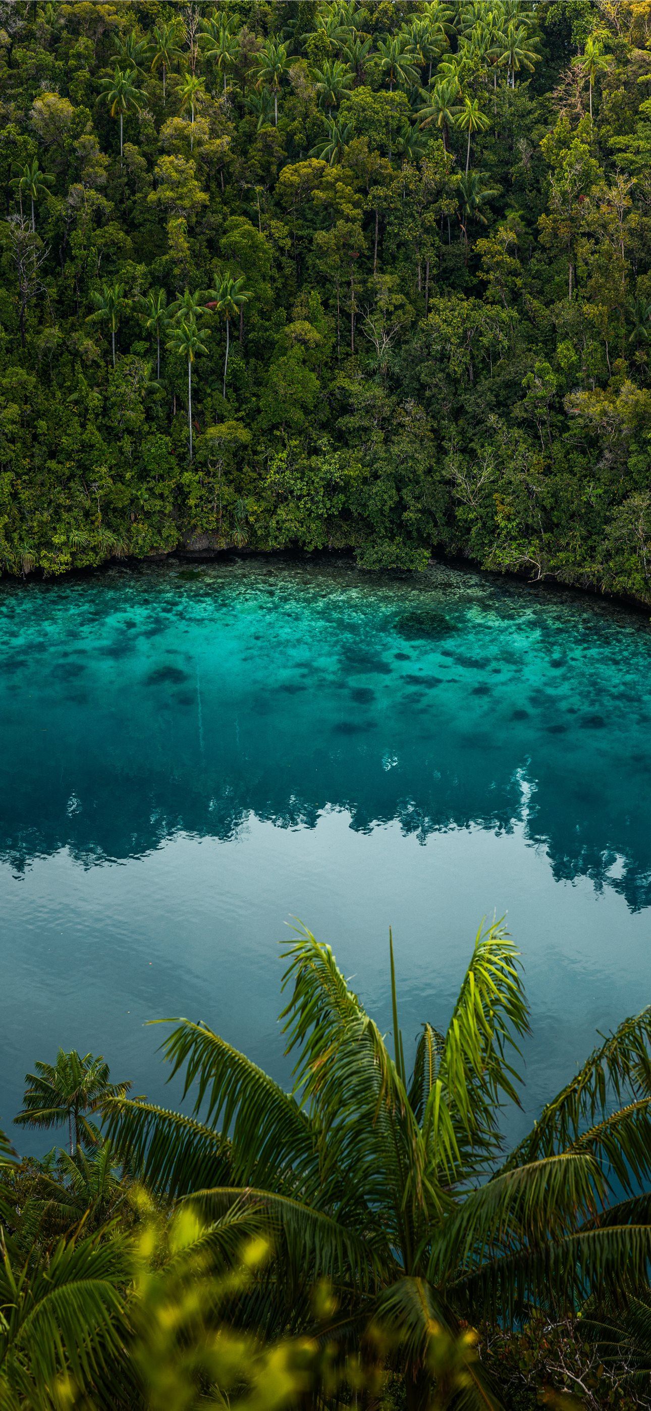 1290x2796 a blue lake surrounded by trees in the middle of a... -  iPhone Wallpaper