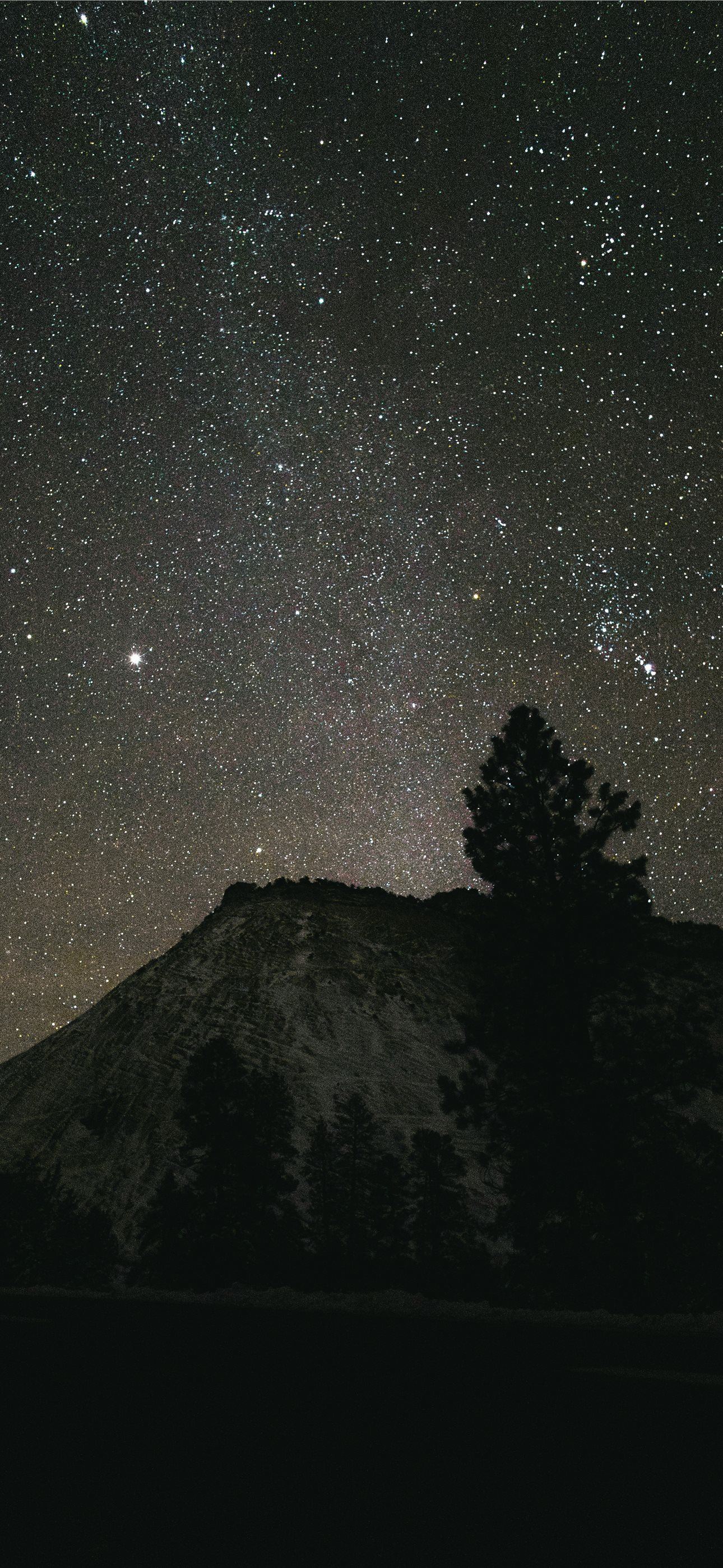 Starry night sky over a silhouetted mountain peak iPhone wallpaper