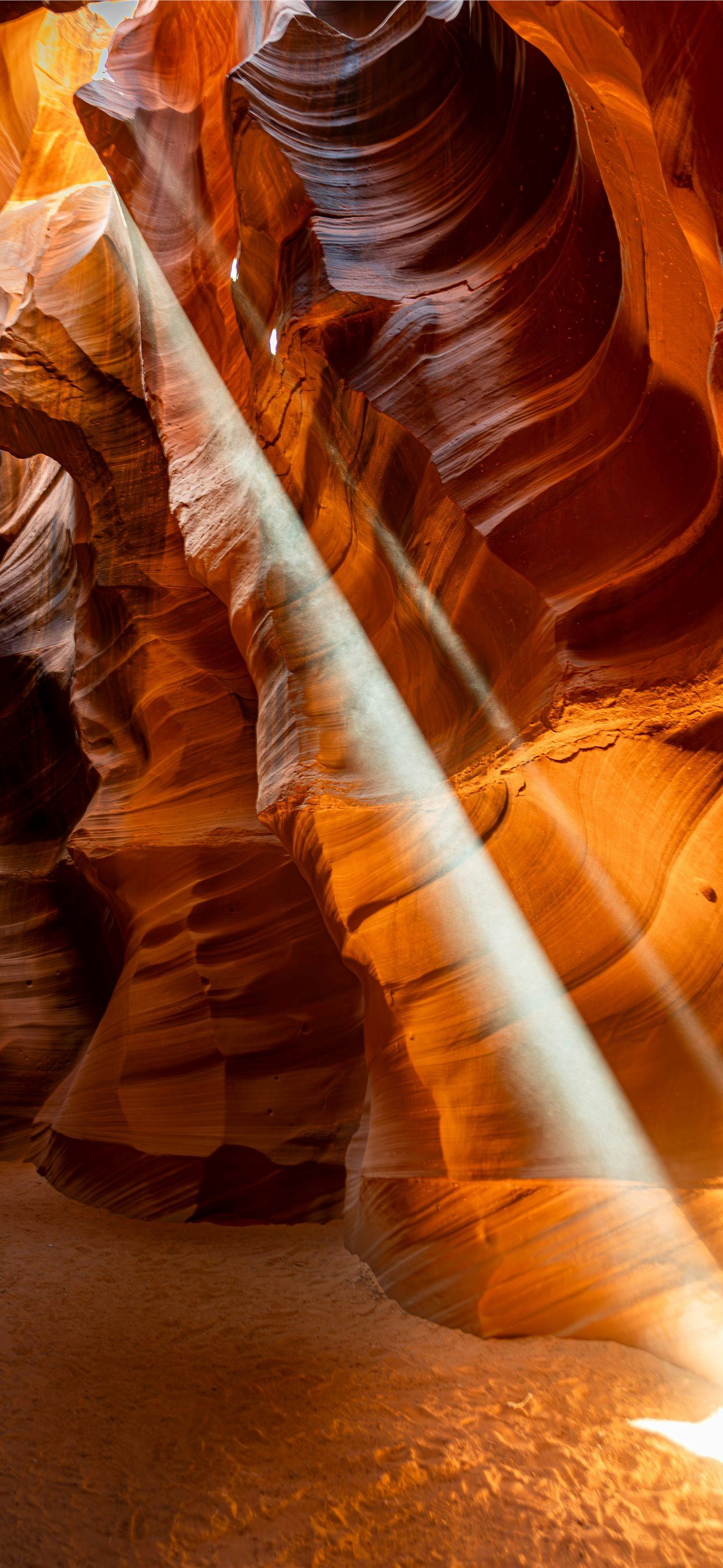A light shines through a narrow slot in a canyon iPhone wallpaper