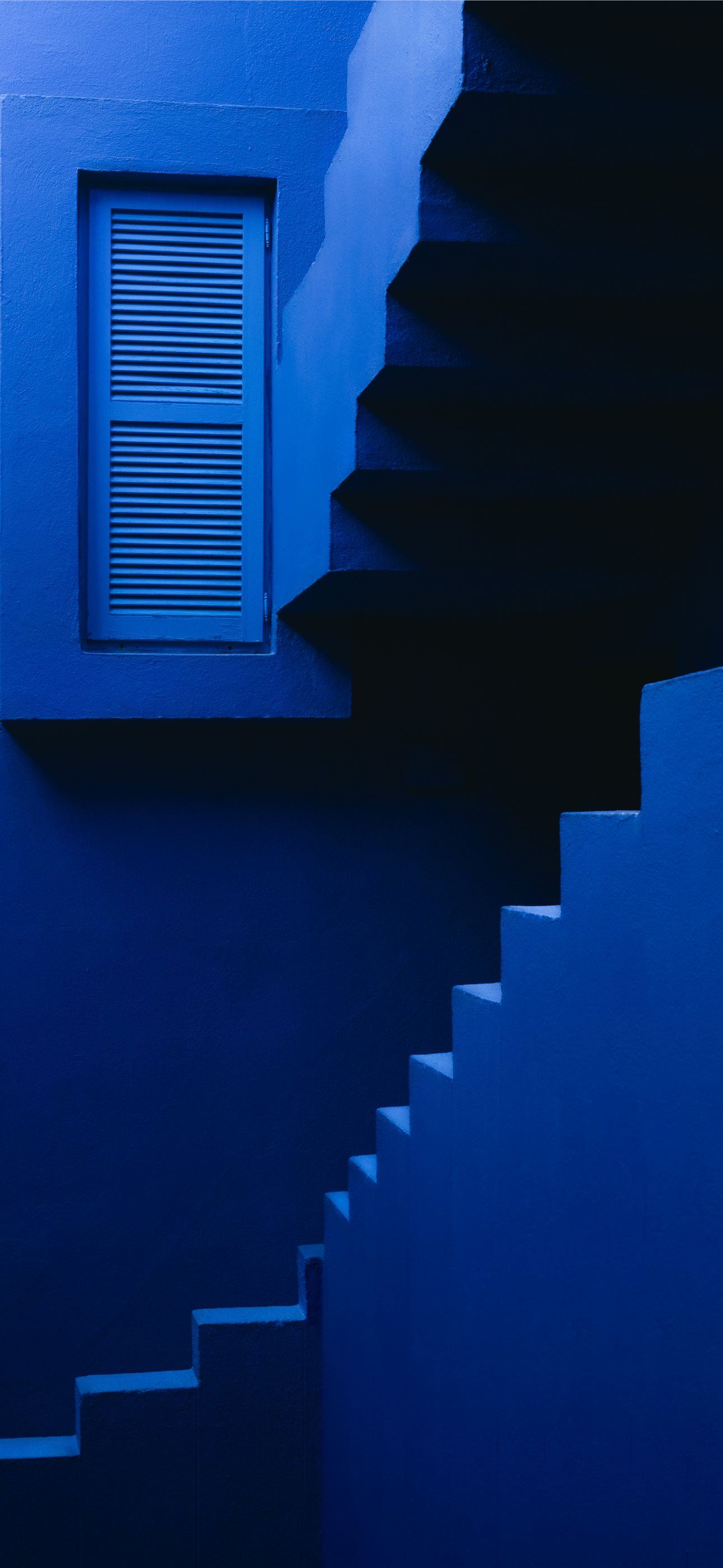 a blue staircase leading to a window in a building iPhone wallpaper