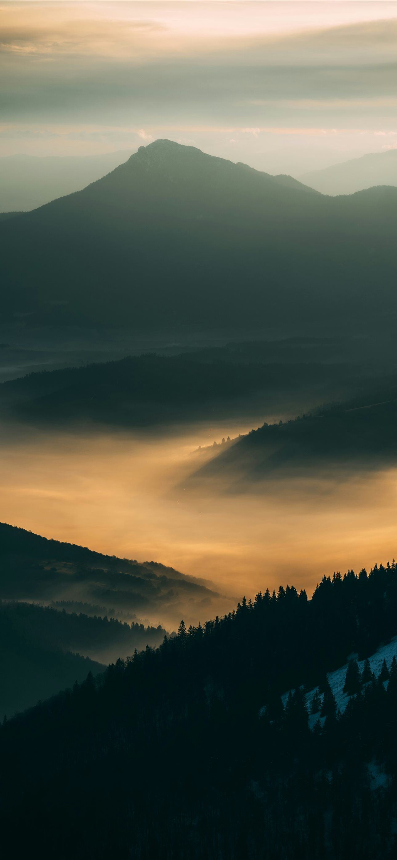 1290x2796 a view of a mountain range covered in fog -  iPhone Wallpaper