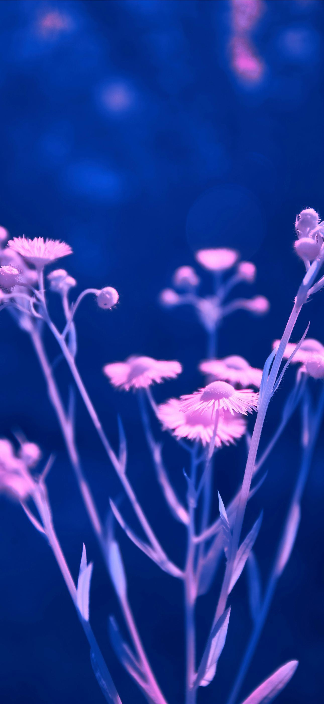 1290x2796 a close up of a bunch of flowers on a blue backgro... -  iPhone Wallpaper