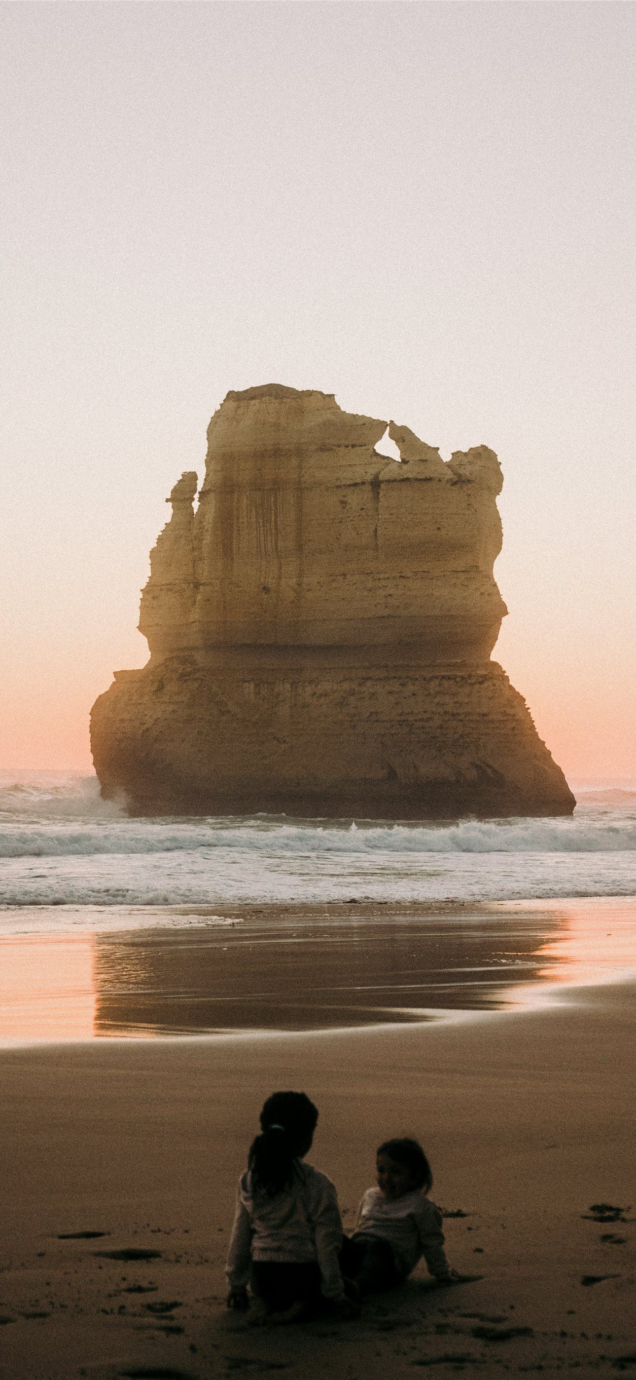 1290x2796 two children sitting on the beach watching the sun... -  iPhone Wallpaper