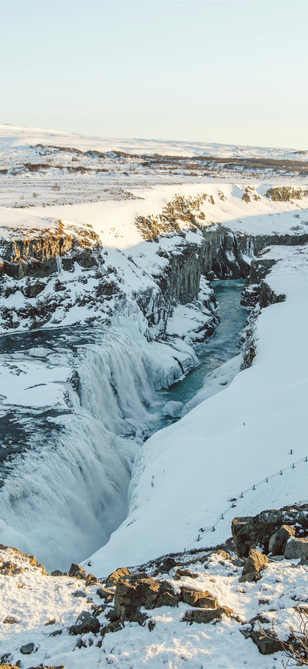 1290x2796 a large waterfall in the middle of a snowy field -  iPhone Wallpaper