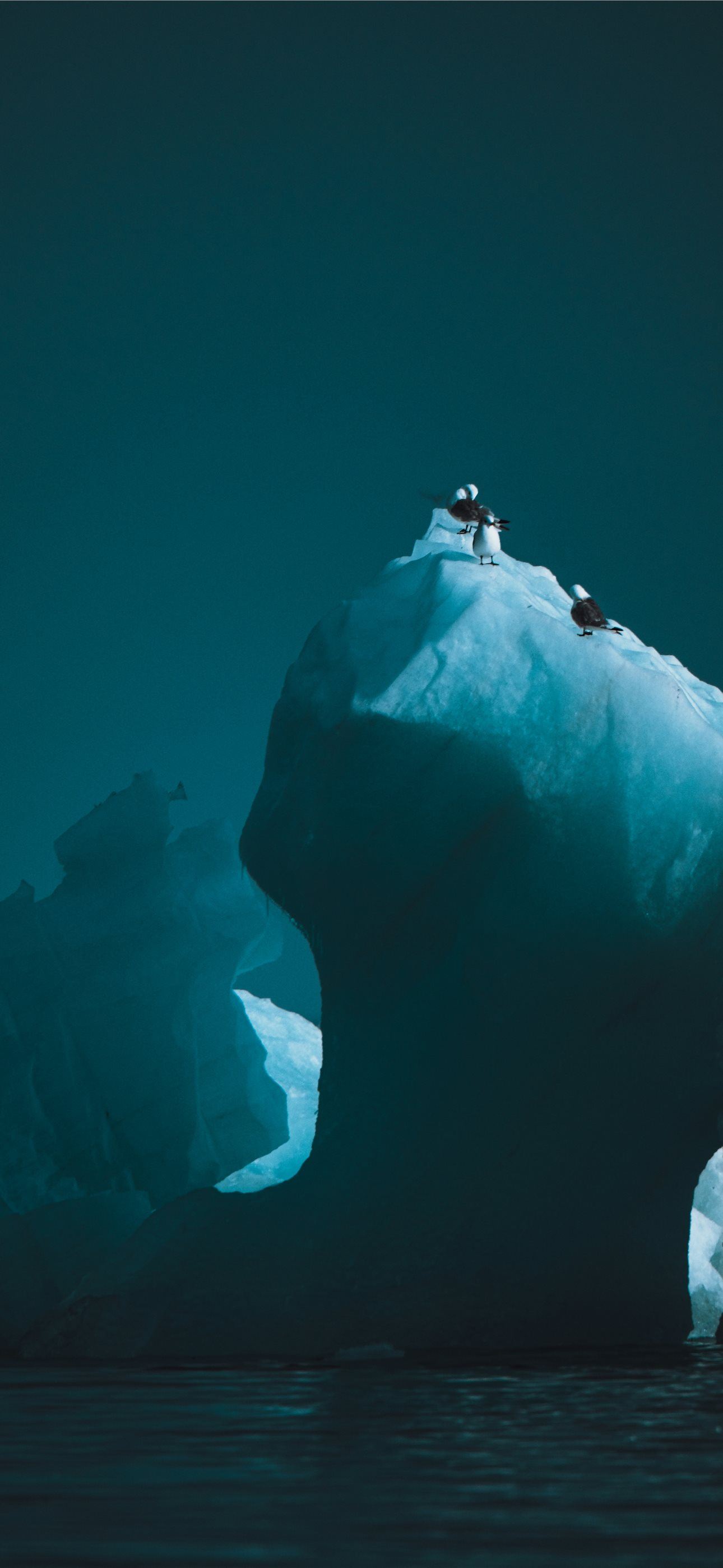 A large iceberg floating in the ocean with people ... iPhone wallpaper