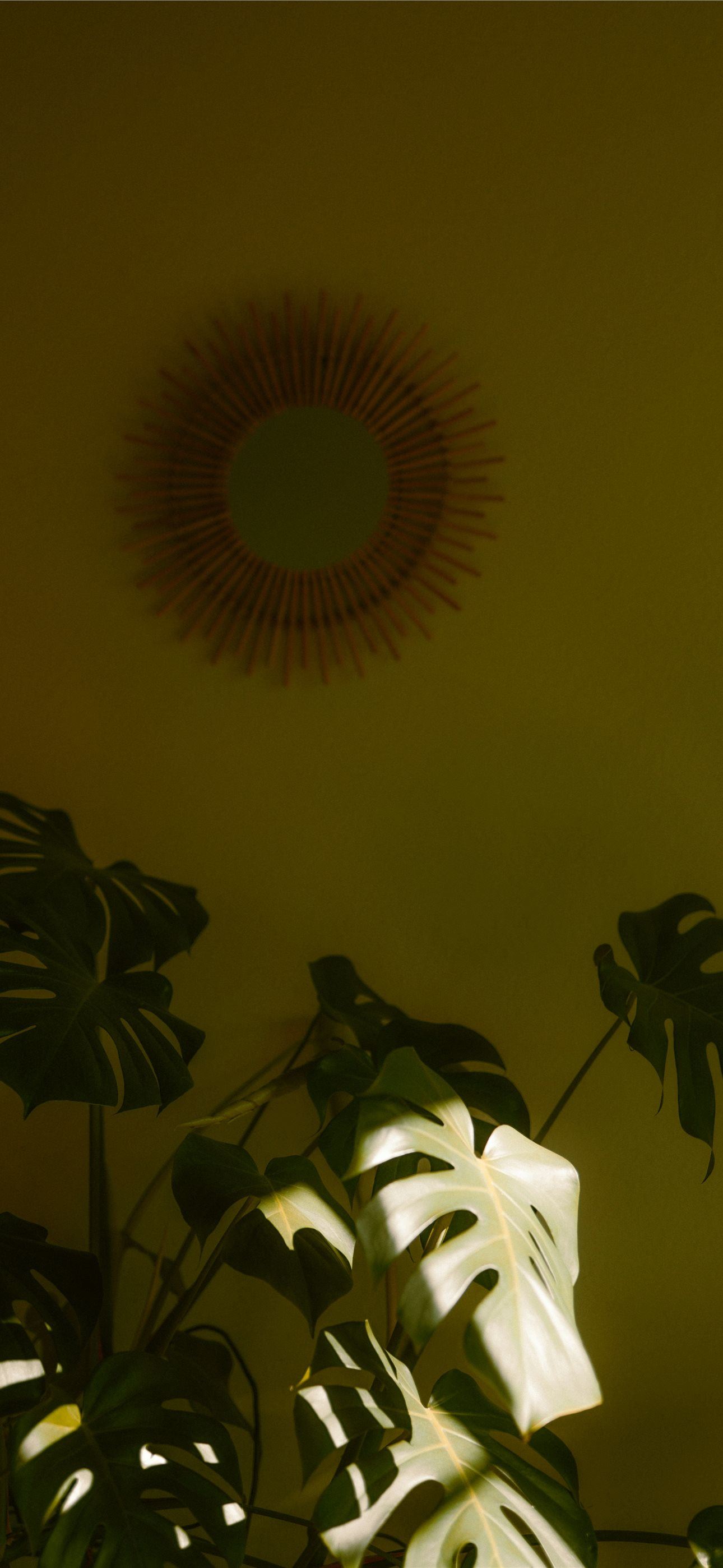 a plant in a room with a mirror on the wall iPhone wallpaper