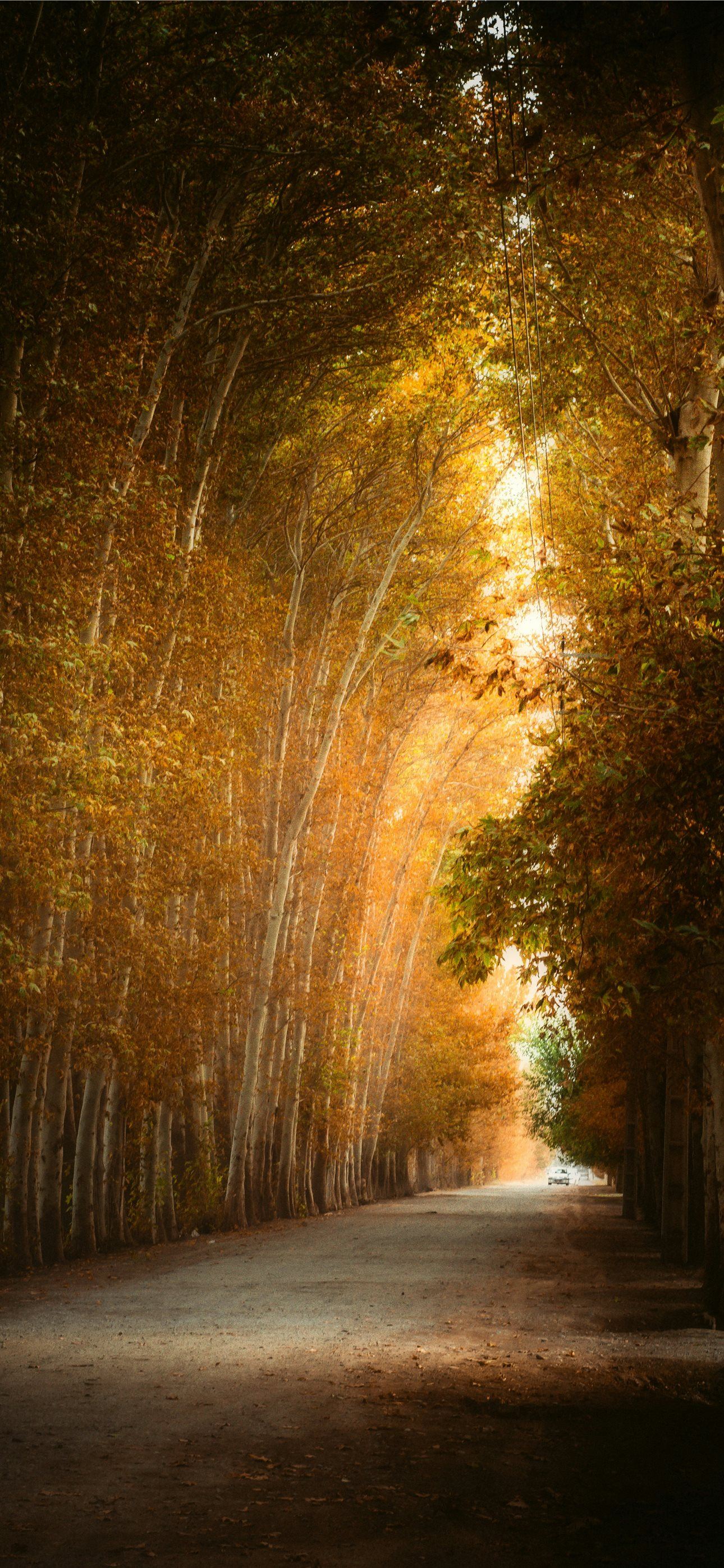 1290x2796 a tree lined road in the middle of a forest -  iPhone Wallpaper