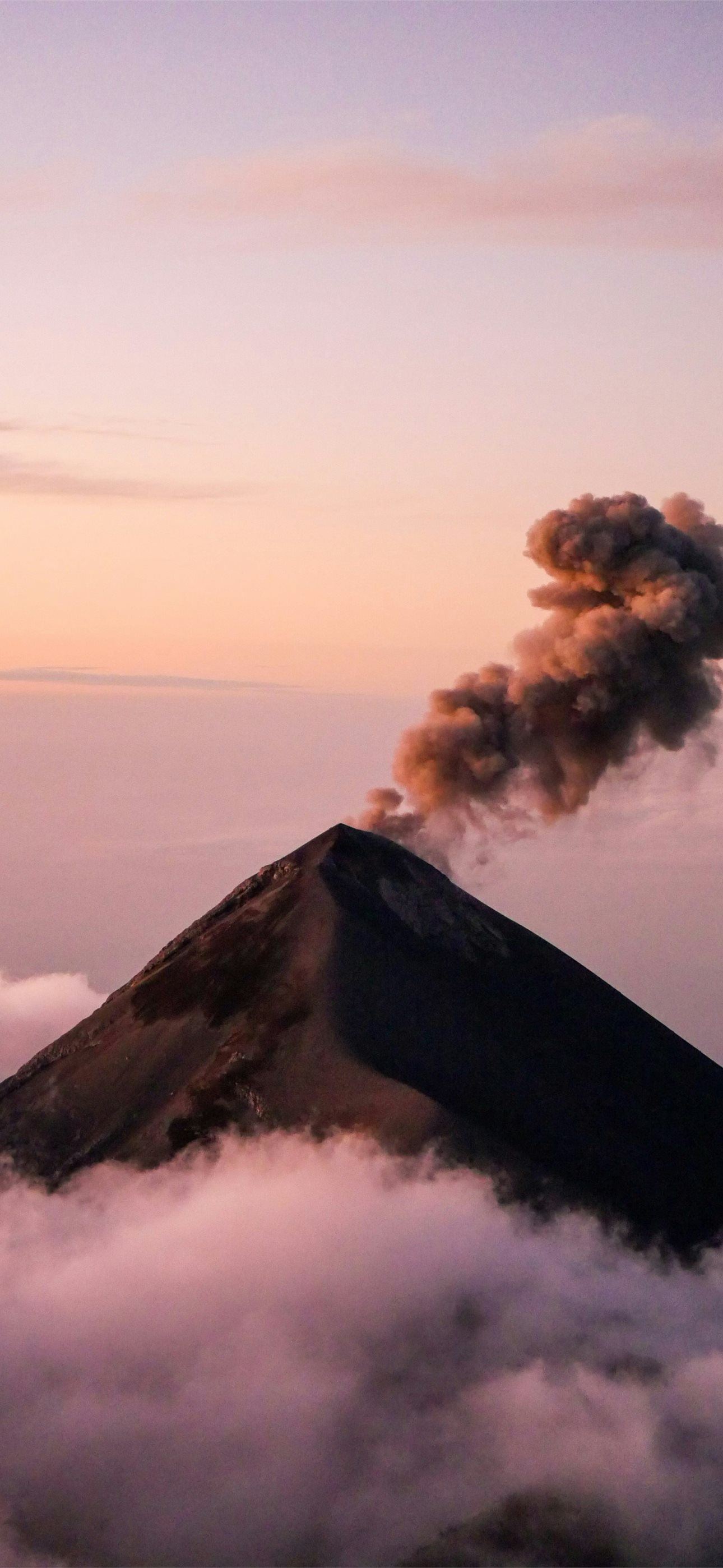 Volcano erupting smoke above clouds at sunset iPhone wallpaper