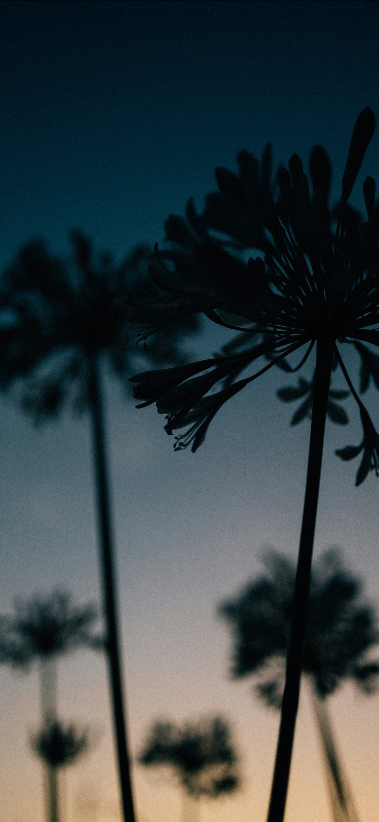1290x2796 Silhouetted agapanthus flowers against a gradient ... -  iPhone Wallpaper