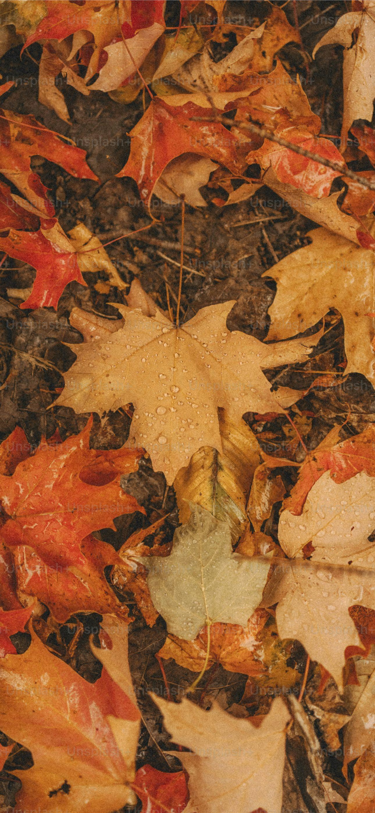 a bunch of leaves that are laying on the ground iPhone wallpaper