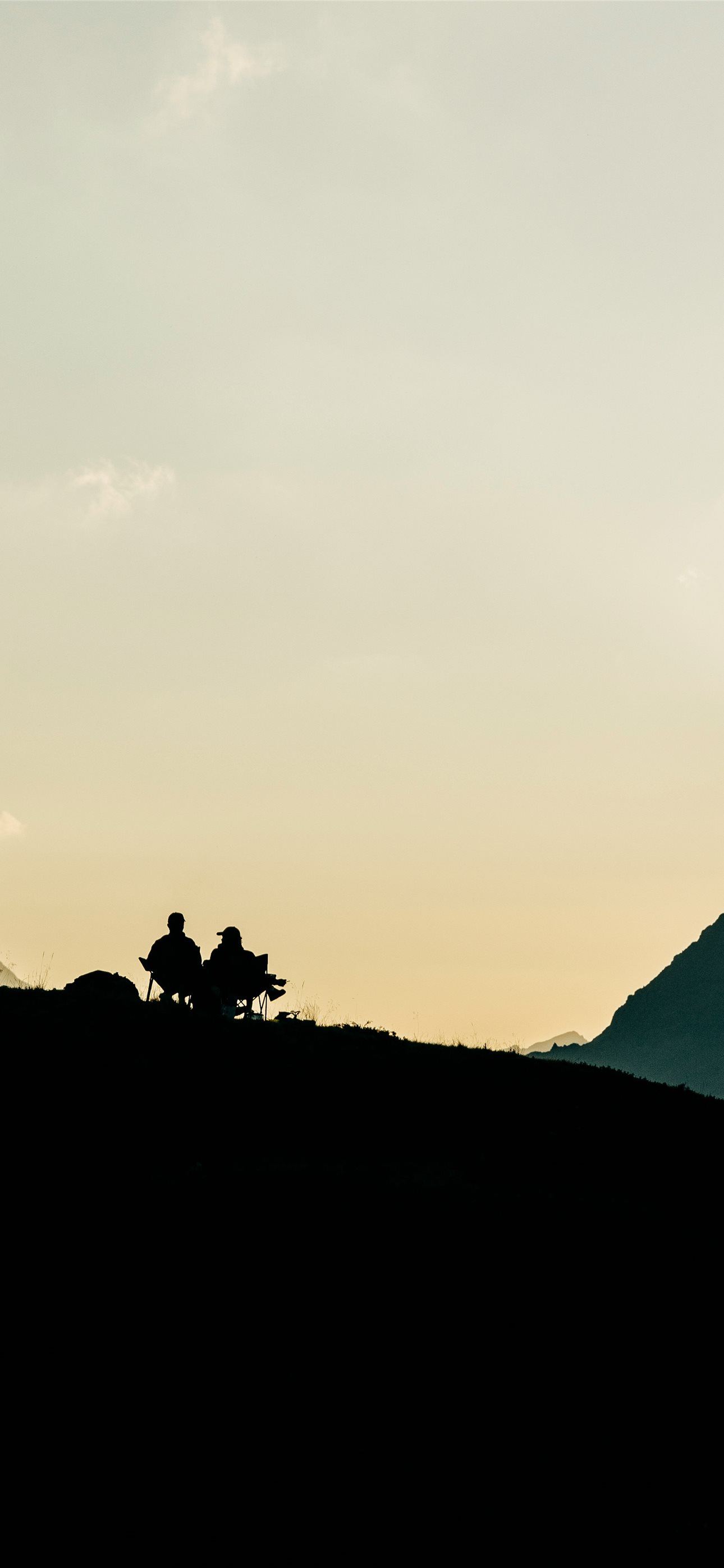 1290x2796 Two people silhouetted on a mountain ridge at suns... -  iPhone Wallpaper